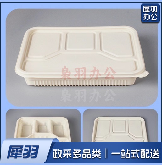 一次性淀粉基环保餐盒 单层带盖分割长方形 四个 4G-02 200套/箱 单位:个