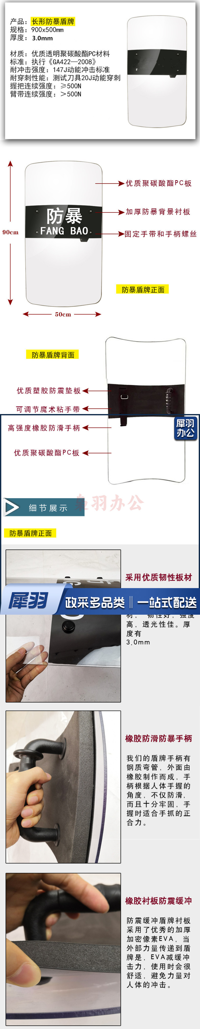 PC防爆盾牌防暴盾牌手持盾牌校园安保器材900*500mm