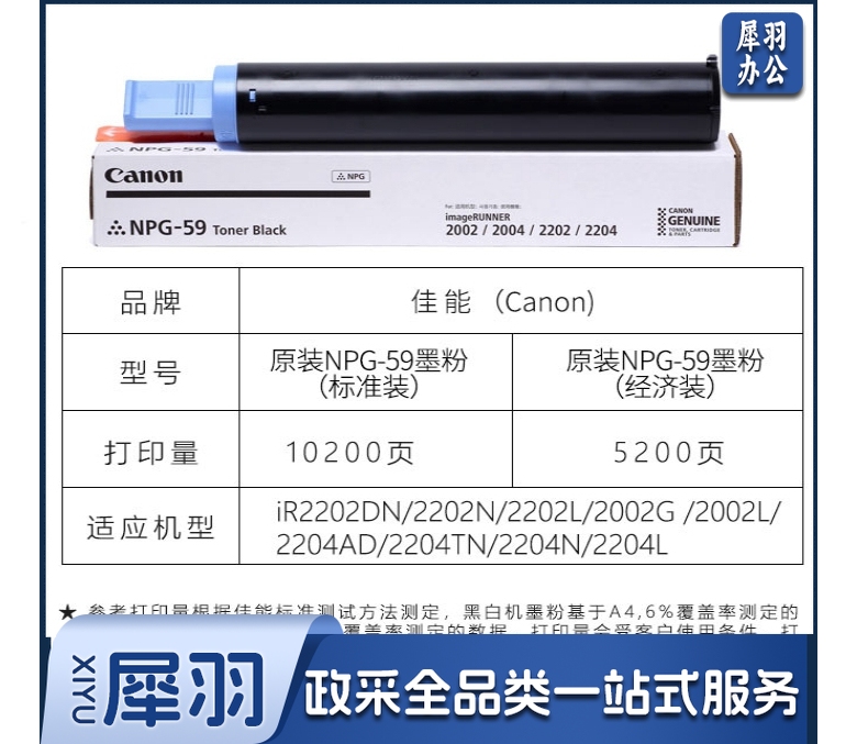 佳能(Canon)NPG-59 墨粉 2206N/L/AD粉盒墨盒2002G/2204N碳粉粉盒 NPG-59 标准装