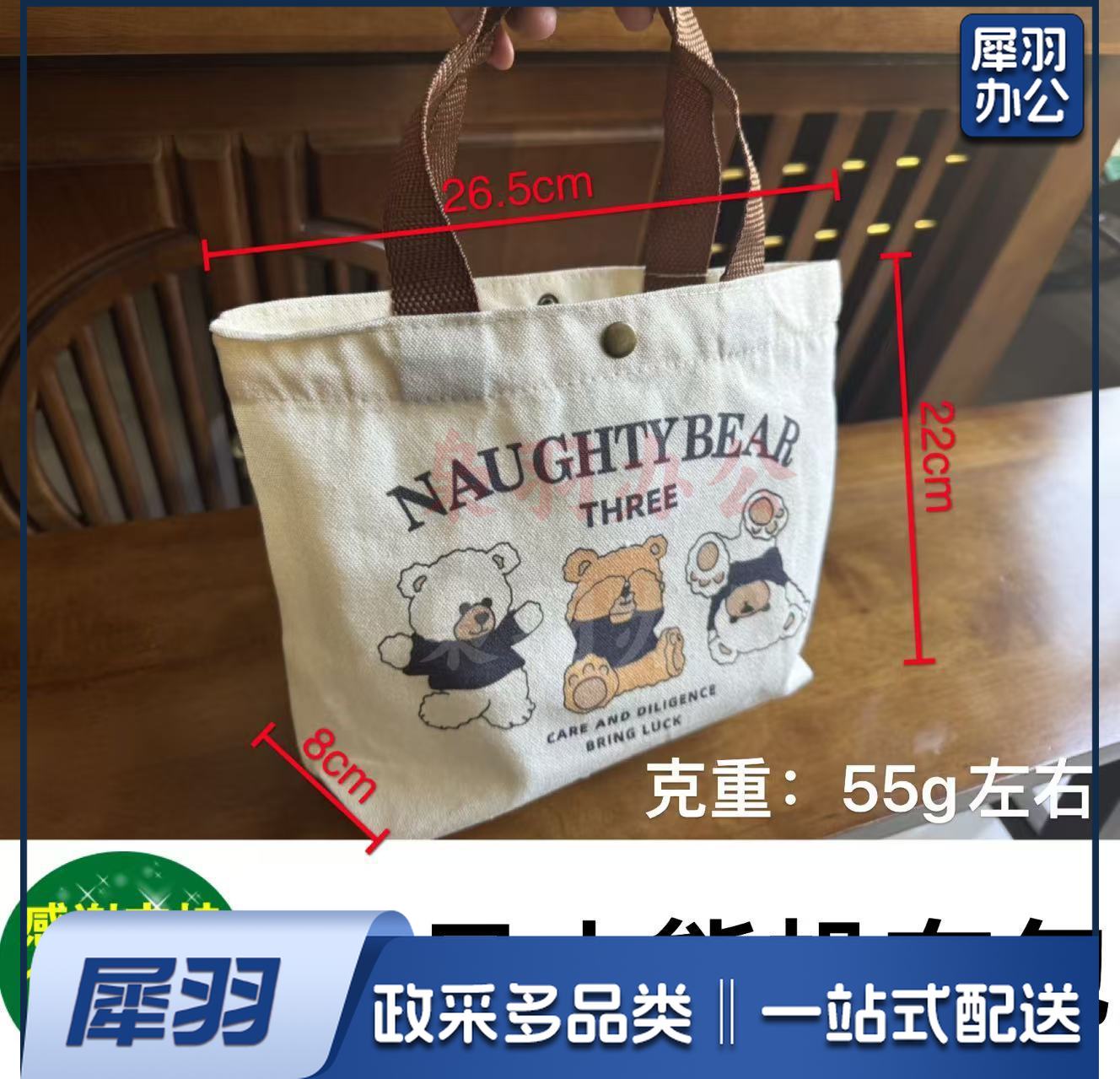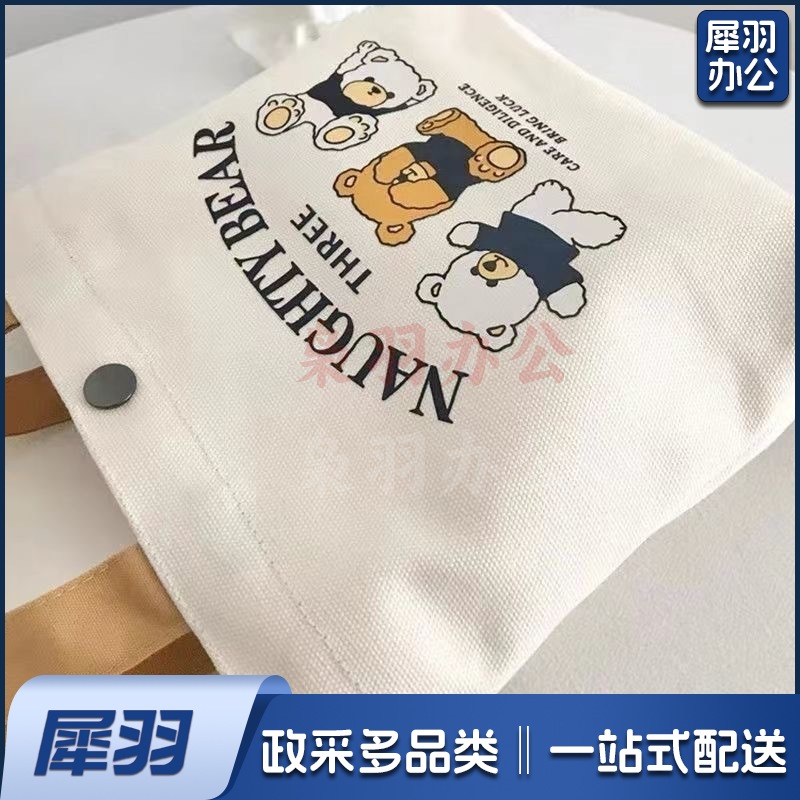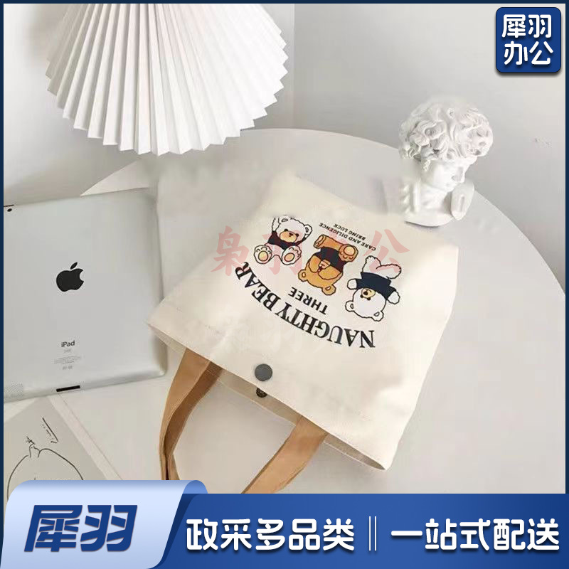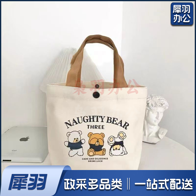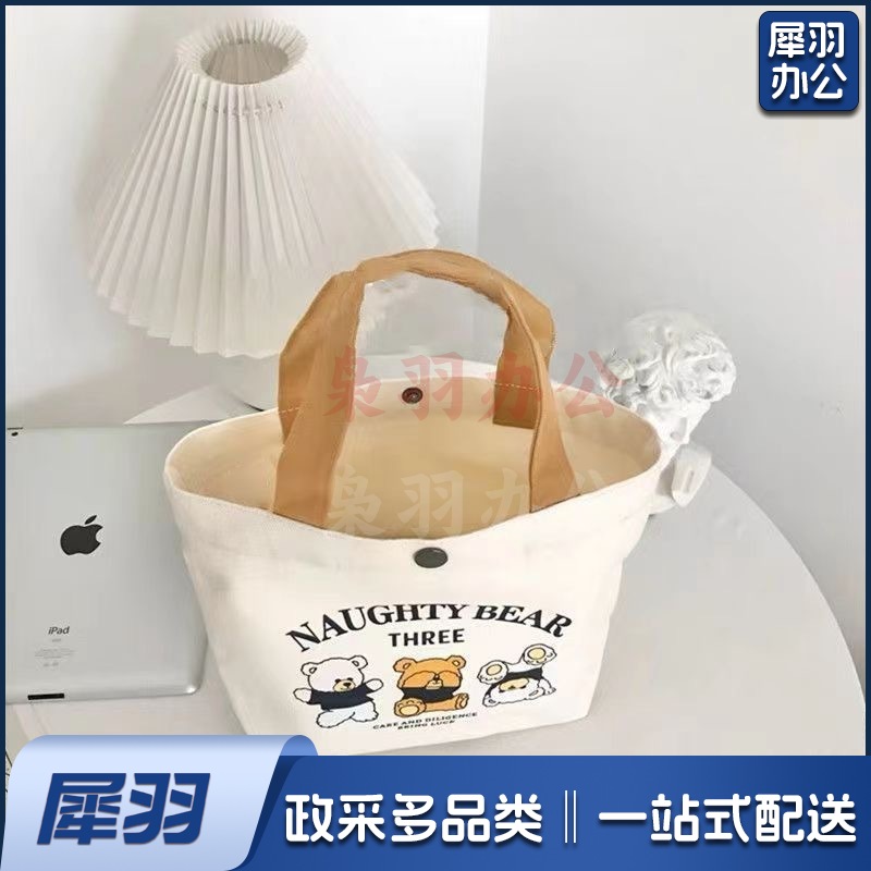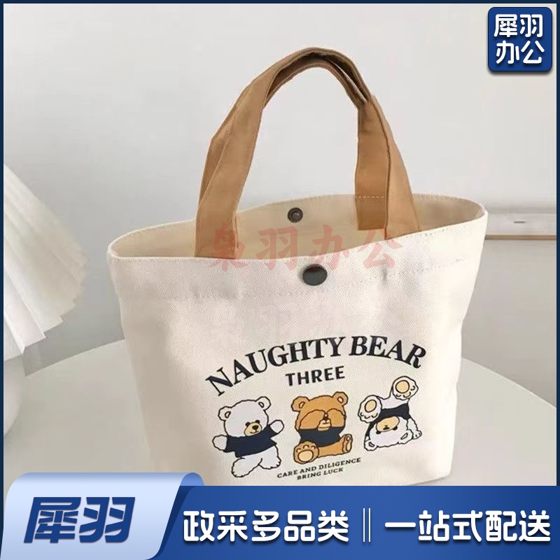 帆布包三只小熊帆布包便携手提袋便当小巧卡通帆布袋百搭饭盒袋简约上班(一个)