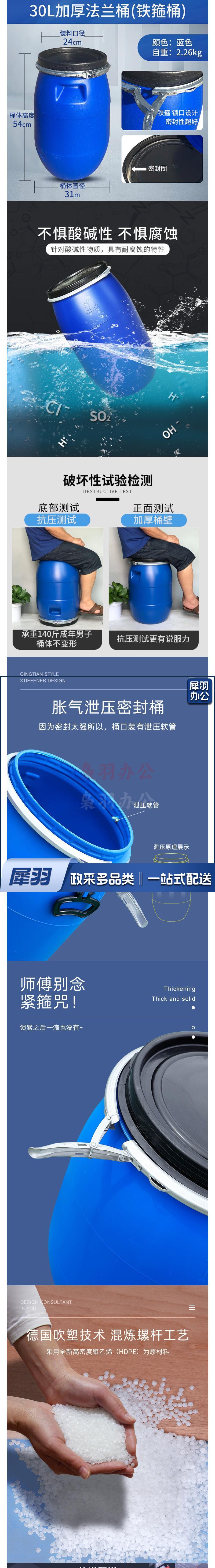 30升加厚法兰桶 塑料铁箍密封桶 货号:JC45