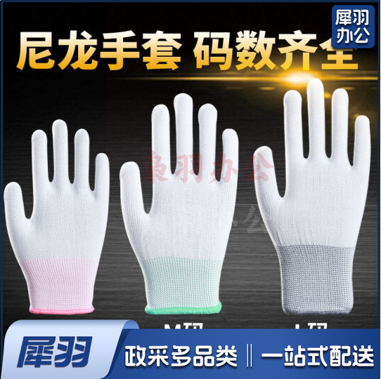 白色尼龙手套 (S号 M号 L号下单备注 )(一包10付起拍)