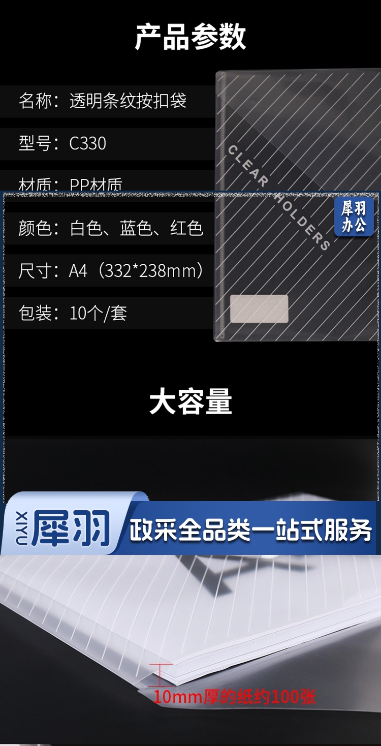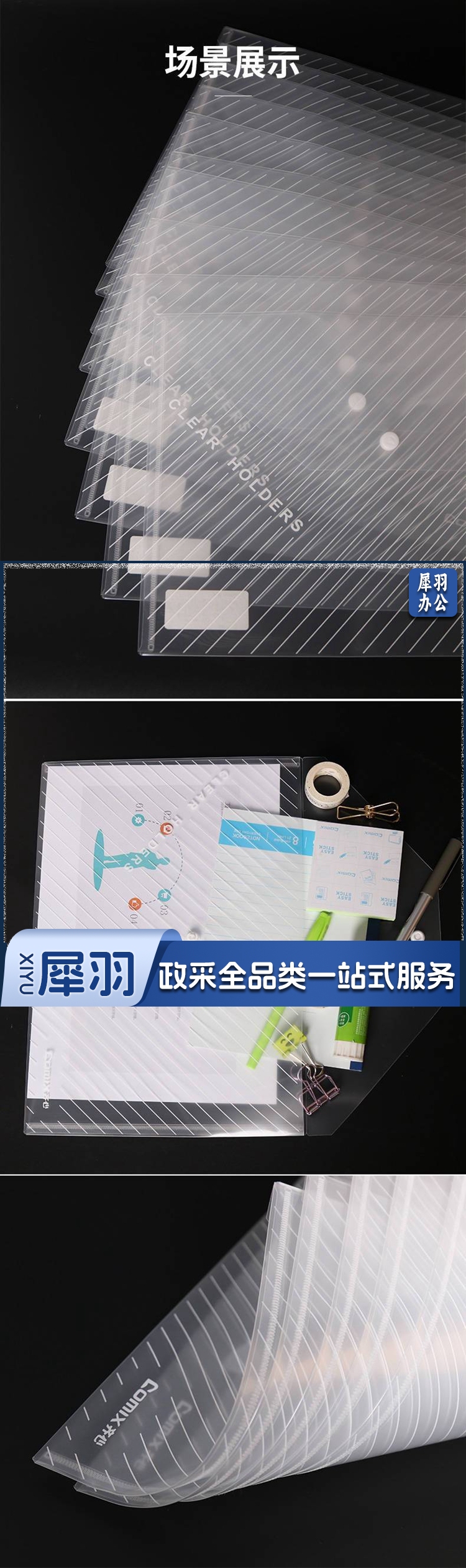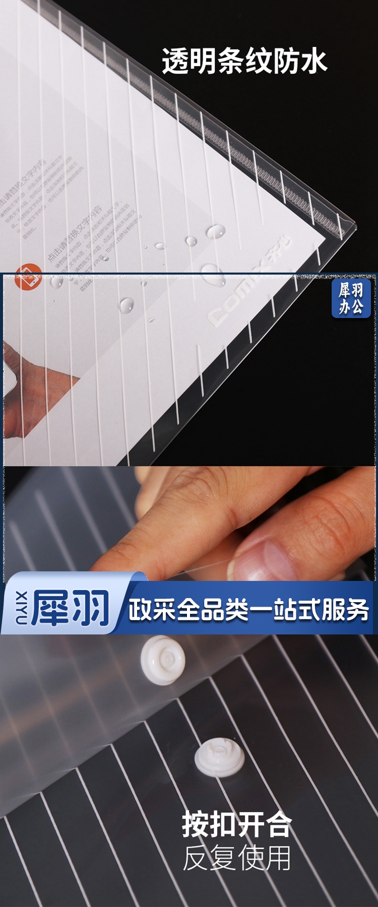 齐心/COMIX C330 按扣式文件袋 A4 (透明白) 10个/包 单位:包