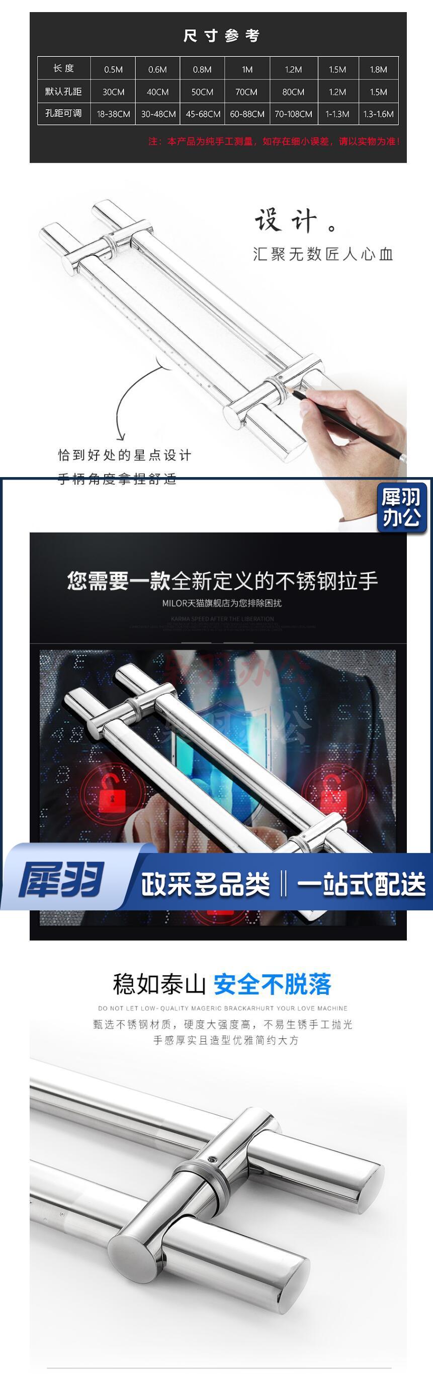 玻璃门拉手 钢化玻璃门把手 可调节孔距 管长60cm 孔距40cm 货号:JC