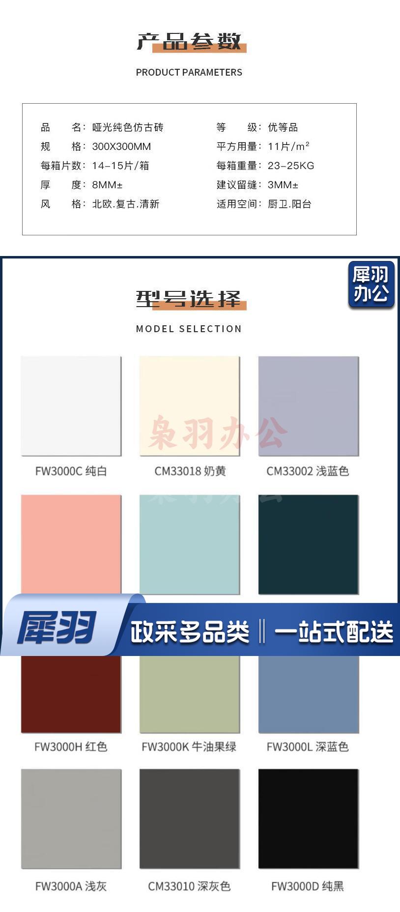 纯白地砖300*300mm纯色瓷砖 15片/箱 货号:JC