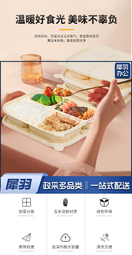可降解餐盒一次性饭盒1000ml*50套四格分隔餐盒打包盒外卖打包便当保鲜盒饭盒一次性餐具