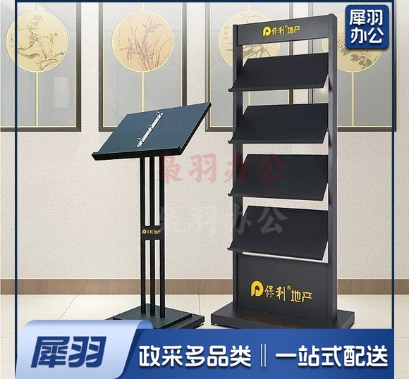 单柱黑色 115*35*49黑 落地售楼部合同活页架餐饮菜单翻页架子可以印logo资料架