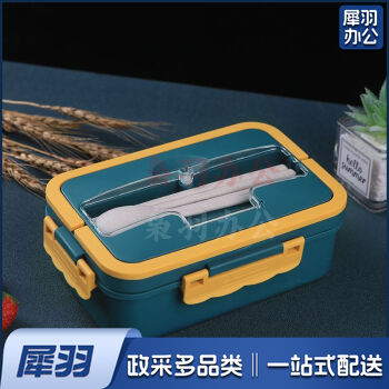 小麦秸秆餐盒 三格保温保鲜饭盒便当盒手提 藏青拼色 1000ml
