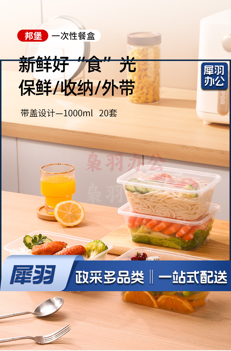 一次性餐盒圆形打包盒长方形饭盒加厚食品级塑料外卖盒冰粉碗带盖300盒