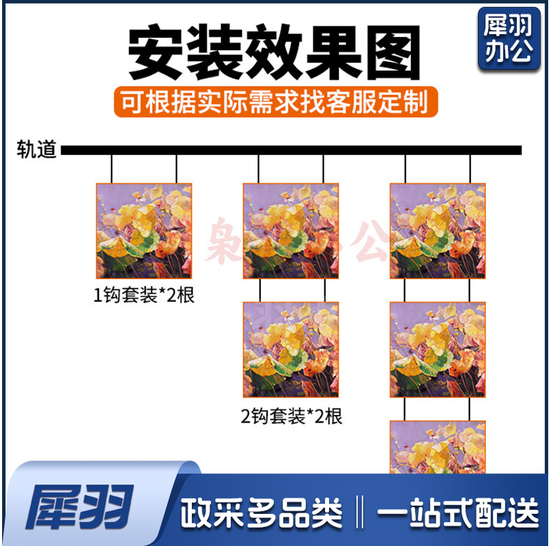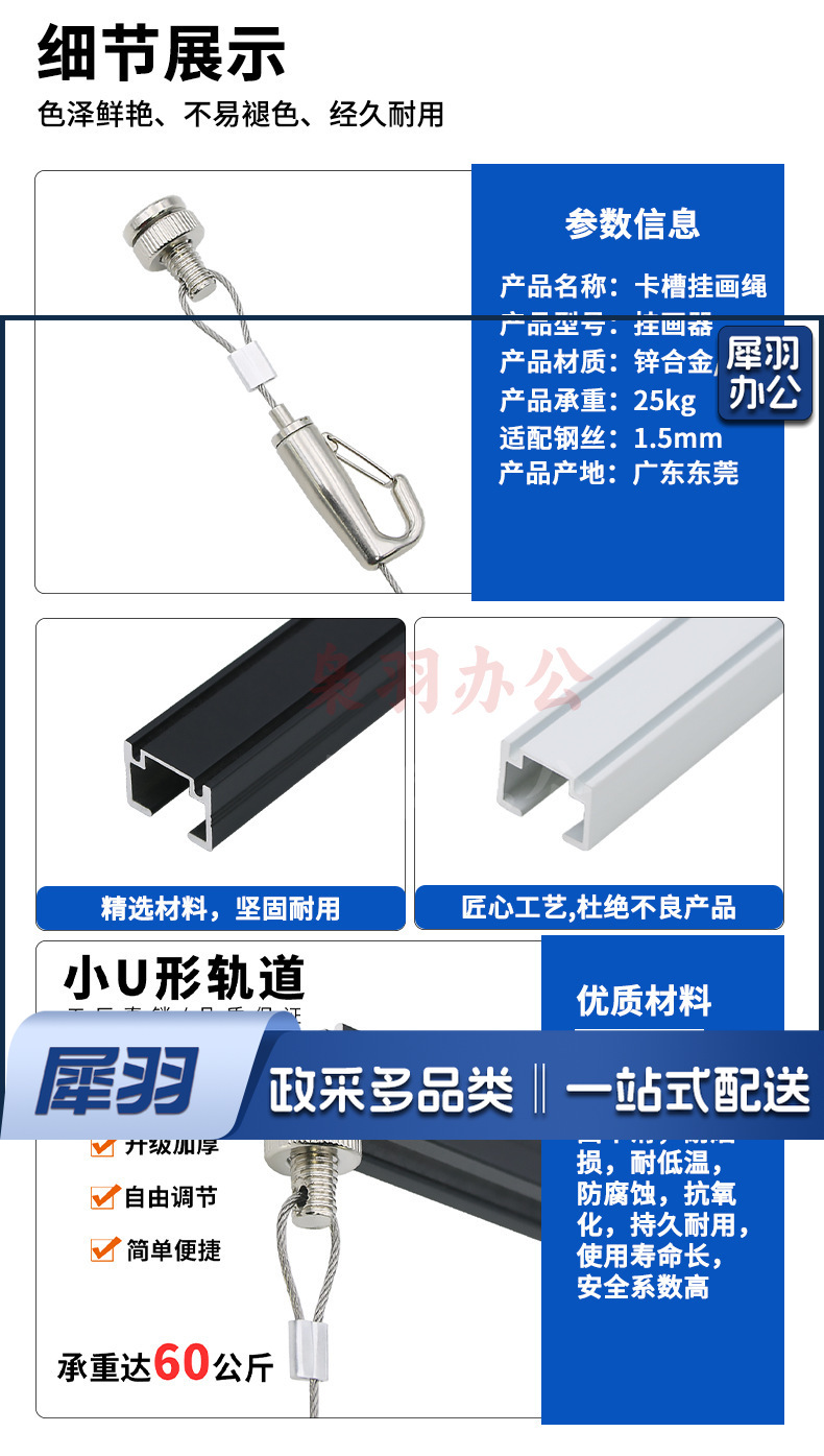 挂画器轨道挂画线铝合金0.5米3钩套装轨道槽可调节挂画绳挂画轨道钢丝绳挂画钩(0.5米3钩套装)