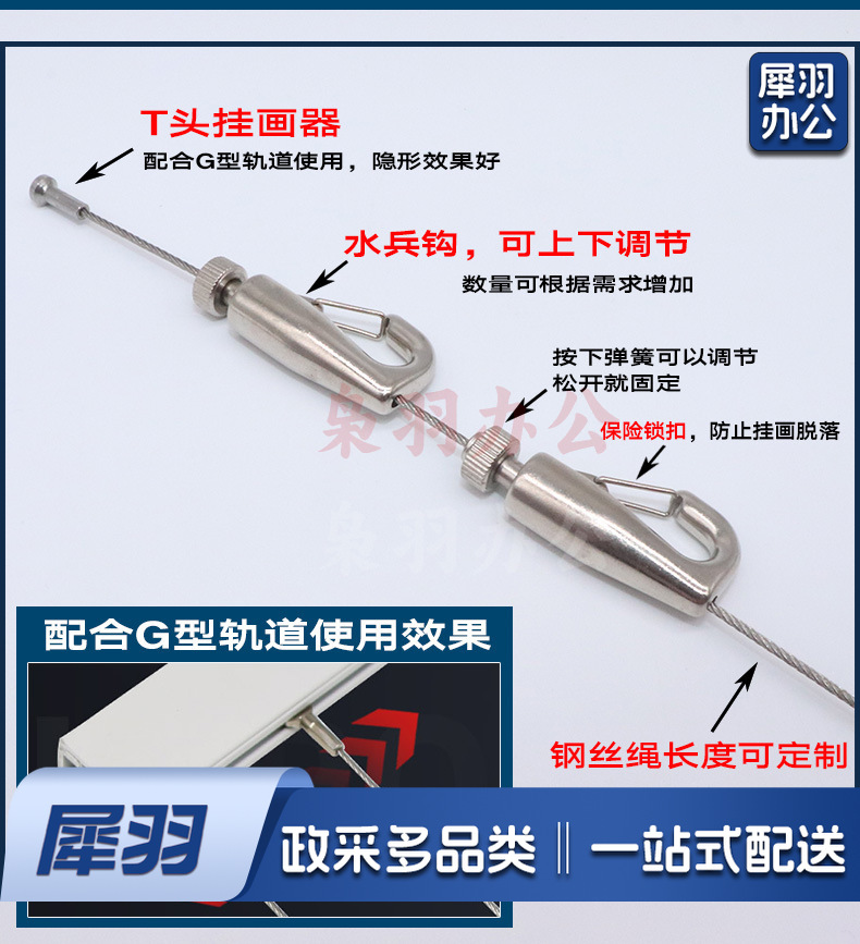 不锈钢钢丝绳挂画器(蛇头+尼龙线+水乒钩/1.5米长)挂钩轨道可调节加厚画室挂绳隐形蛇头五金配件(蛇头+尼龙线+水乒钩/1.5米长)