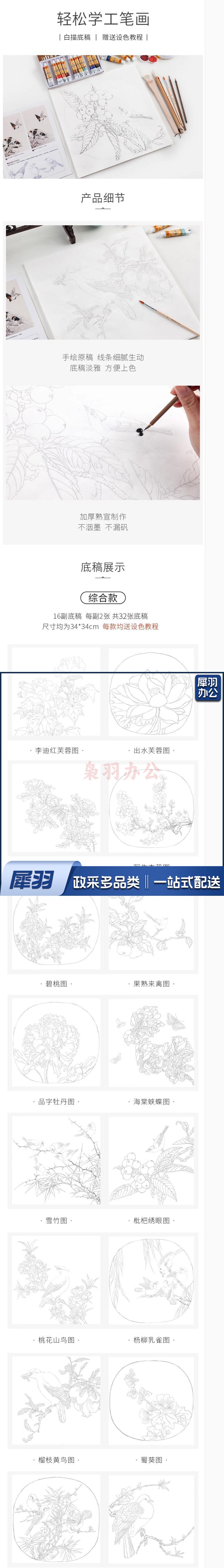 工笔画底稿白描花鸟 综合款底稿32张 货号:JC