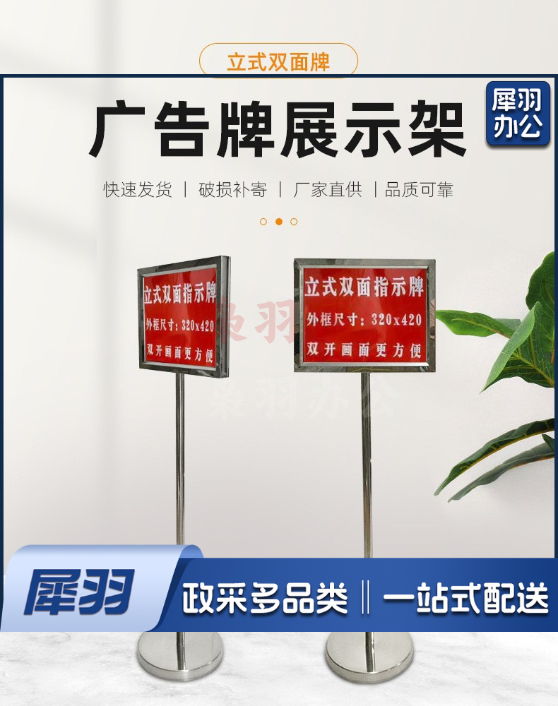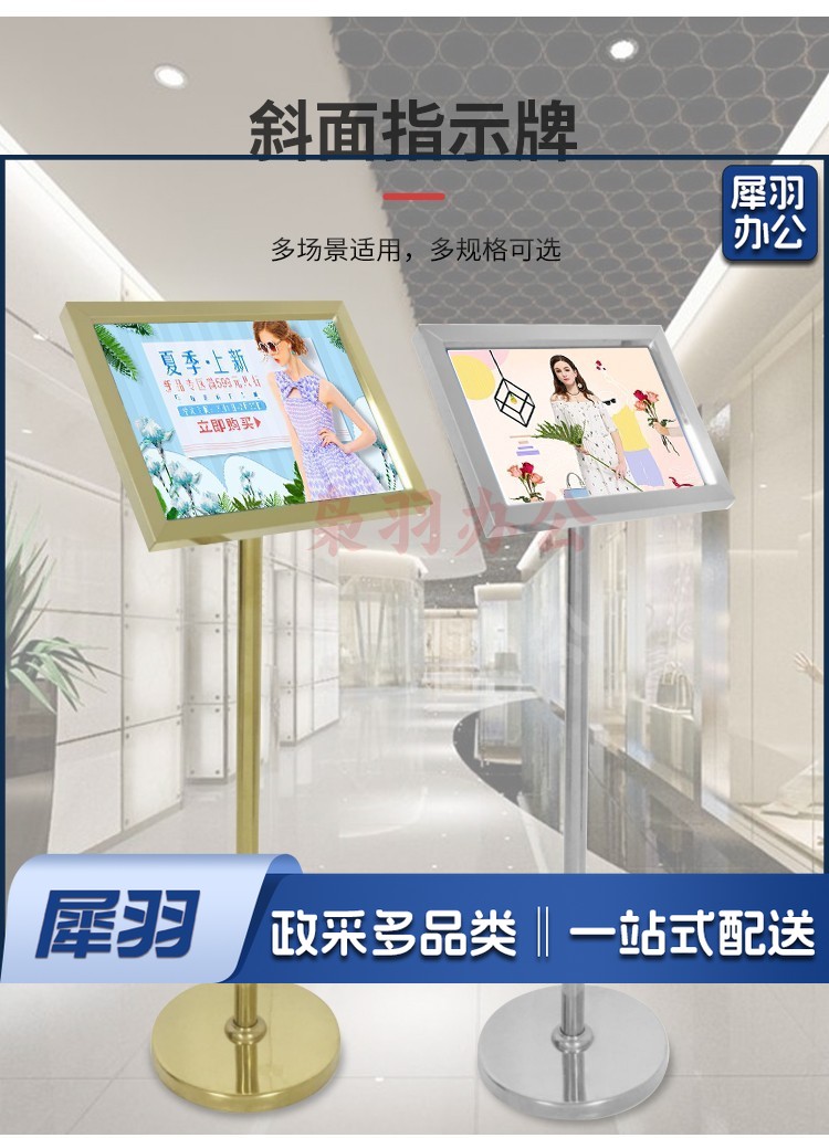 A 4 不锈钢双面斜面指示牌广告立牌导向牌落地海报架酒店立牌