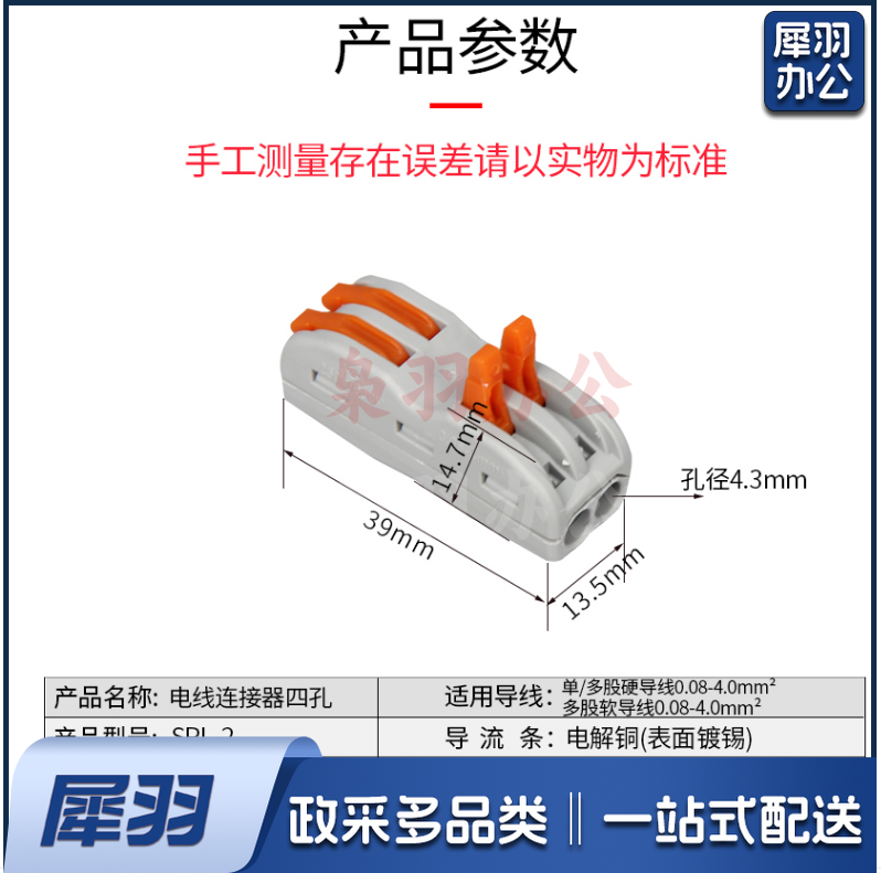 快速接线端子 按压式分线器 二进二出 SPL-2 50只/包 货号:JC