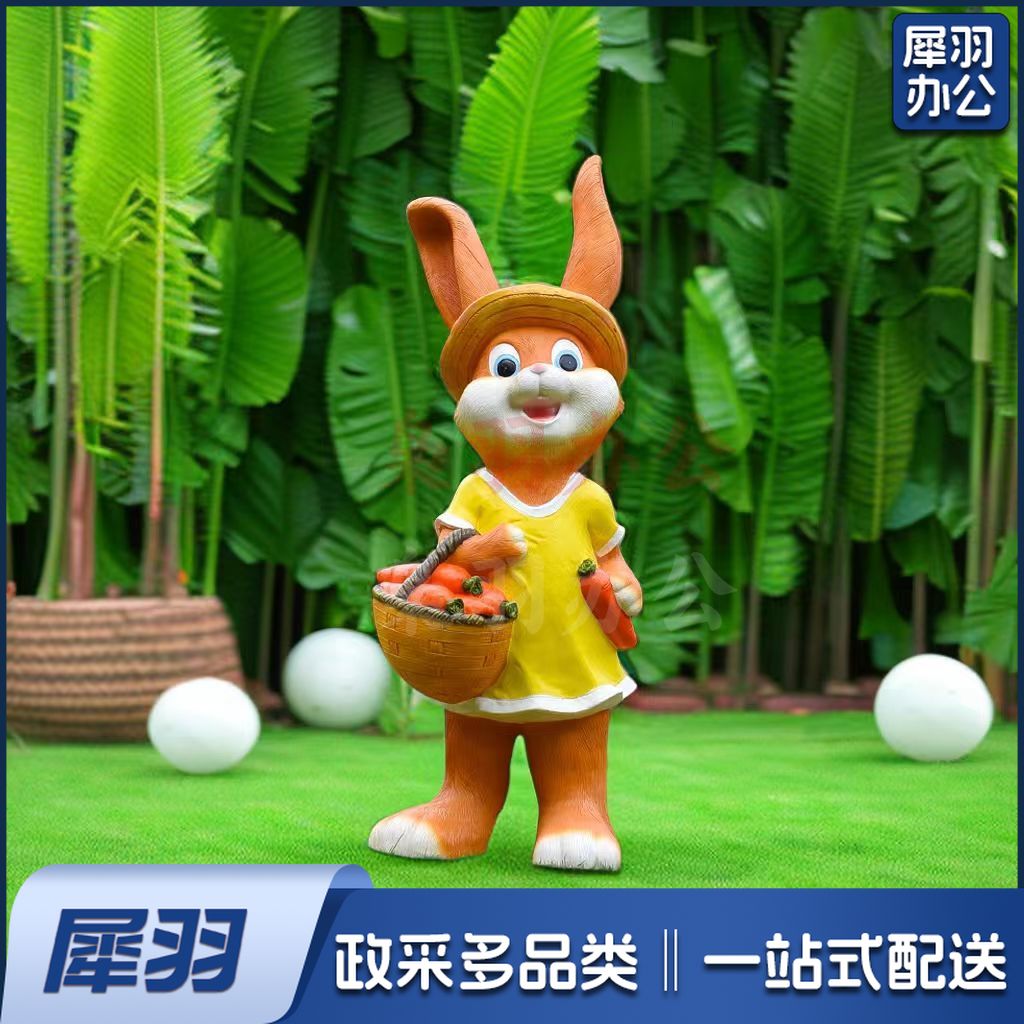 户外卡通兔子摆件玻璃钢树脂花园庭院动物玻璃钢雕塑幼儿园林落地摆件装饰品 提篮女兔 35*32*90cm