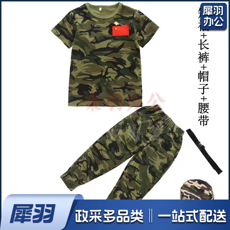 儿童迷彩服套装短袖T恤小学生幼儿园演出服研学夏令营服装军训服套装+帽子+腰带
