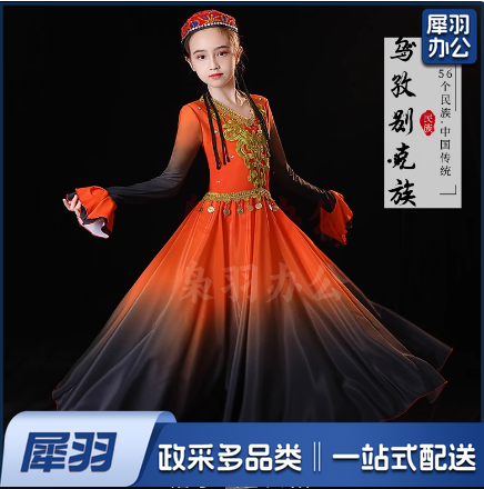 少数民族服装女童乌孜别克族女:帽子+连衣裙(其他少数民族服饰咨询客服)