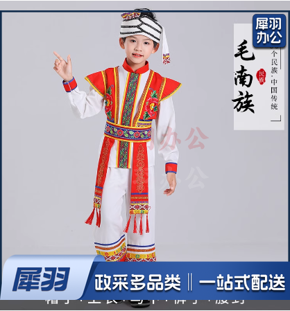 少数民族服装男童毛南族男:帽子+上衣+马甲+裤子+腰封(其他少数民族服装咨询客服)