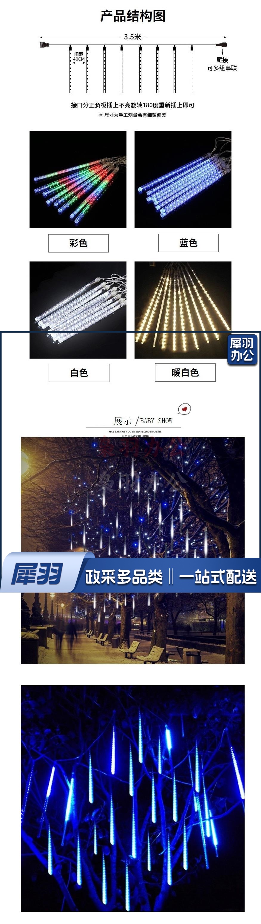 流星雨LED彩灯串 新年装饰七彩闪灯挂灯 8根一组
