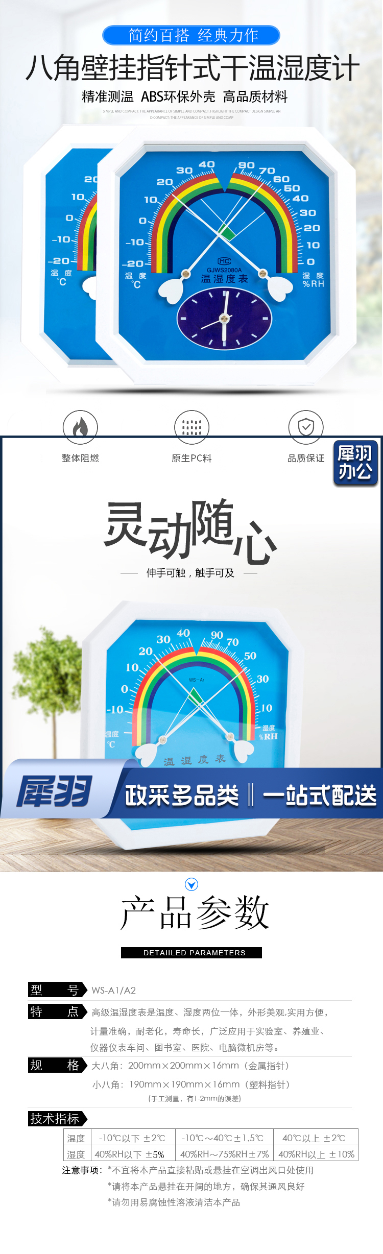 200*200*16mm 八角指针式干温湿度计壁挂式温湿度表