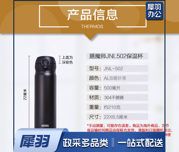膳魔师(THERMOS) 保温杯保冷杯磨砂黑500ml 旅行便携不锈钢车载水杯学生杯子生日礼物多色可选JNL-502
