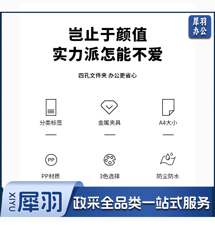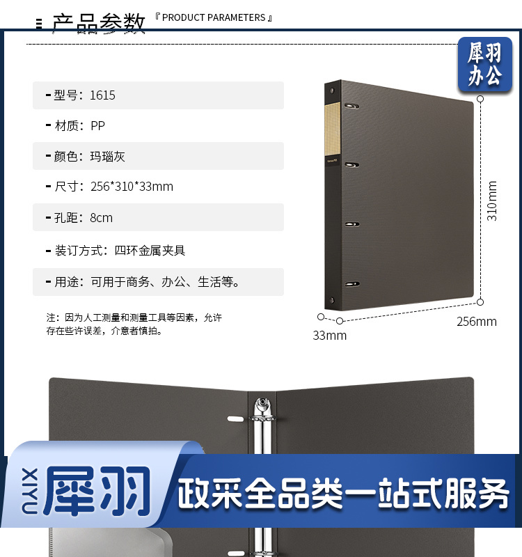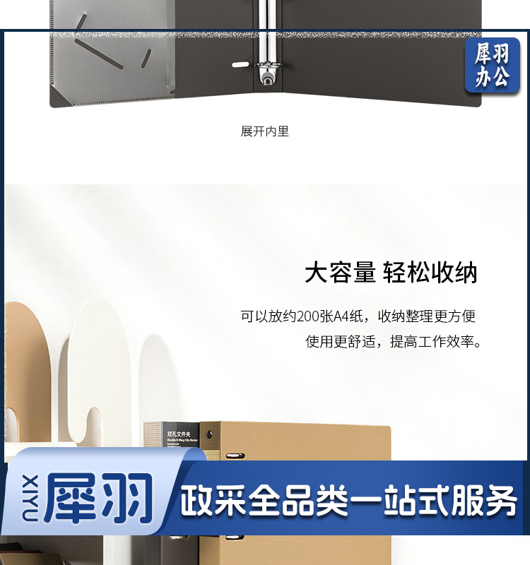 天色 四孔文件夹打孔 a4活页夹插页资料册 多功能办公室收纳神器 彩色穿孔大容量加厚强力夹 TS-1615玛瑙灰