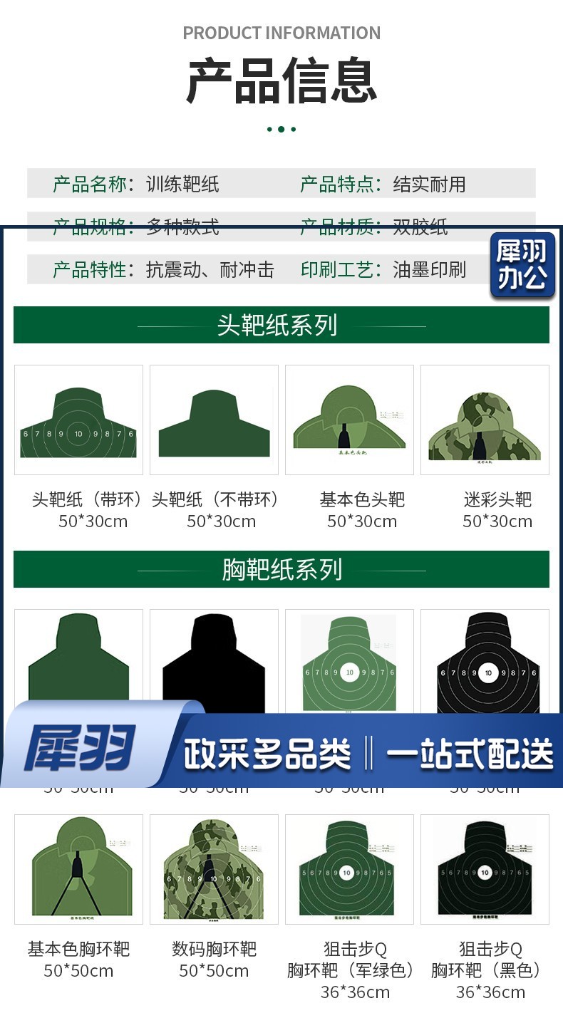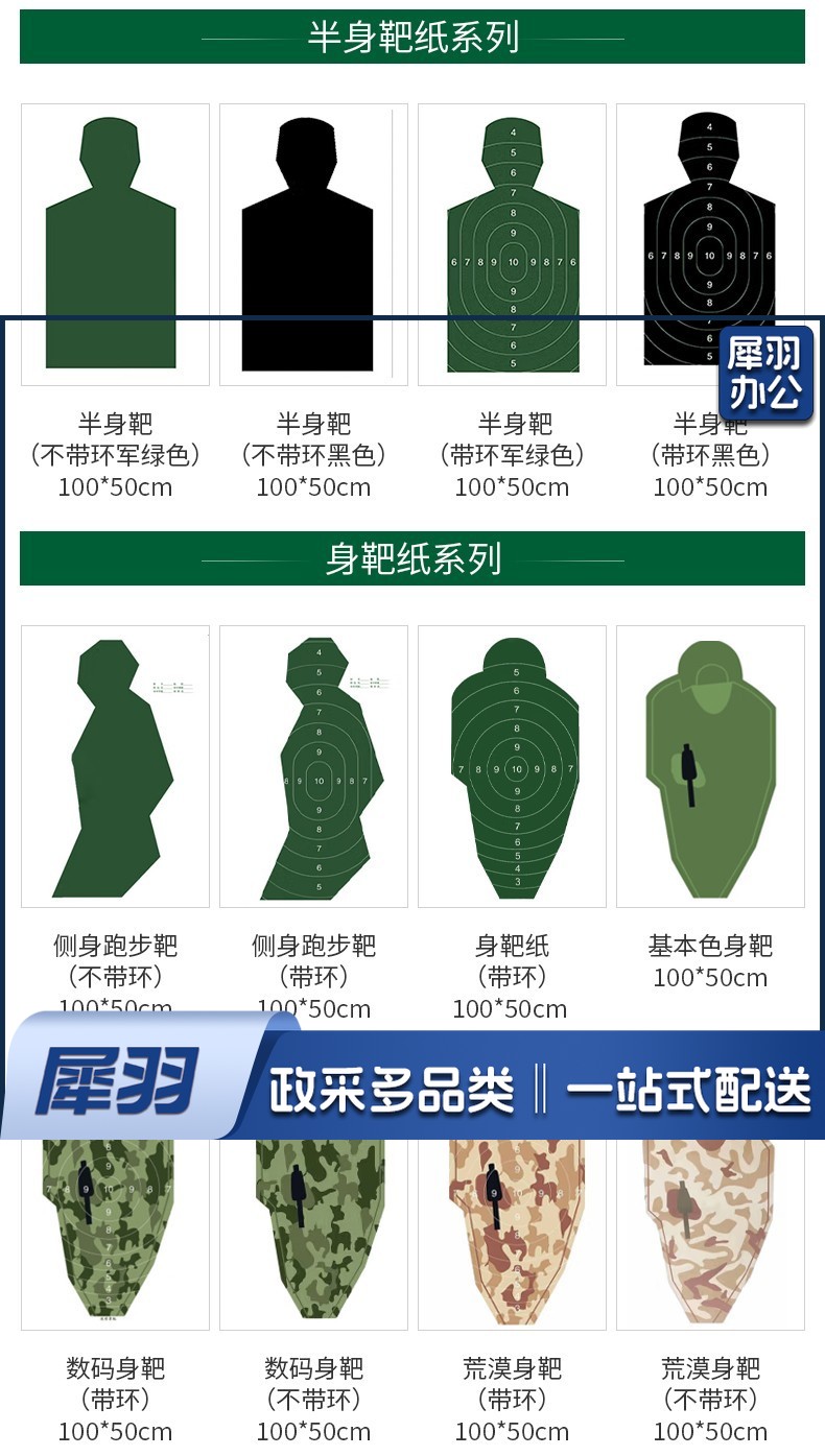 靶纸 胸靶靶纸头靶射击训练打靶板靶纸器材 胸环靶(带环)50*50cm 100张