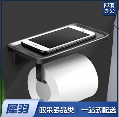 卫生间纸巾盒纸巾架 厕所置物架卫生卷纸架 免打孔太空铝黑色 TJHX05220833056163