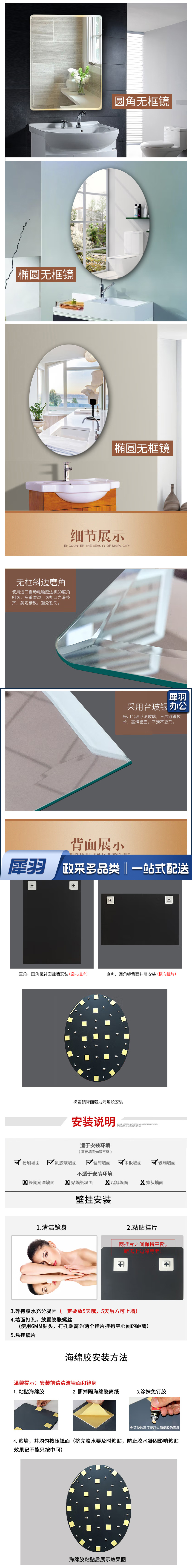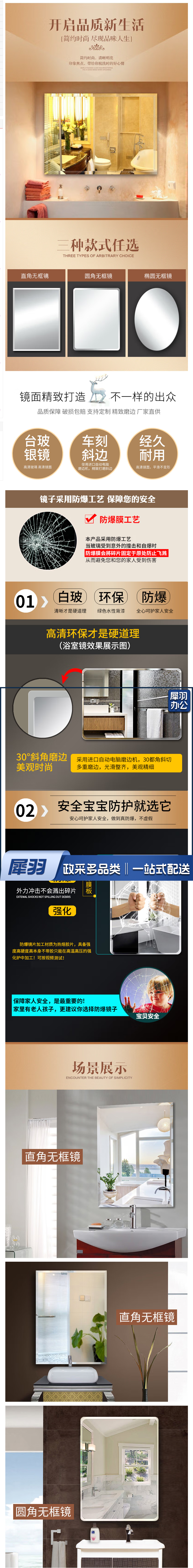 浴室镜子免打孔无框洗手间卫浴镜穿衣镜卫生间镜子壁挂镜子贴墙化妆镜粘贴