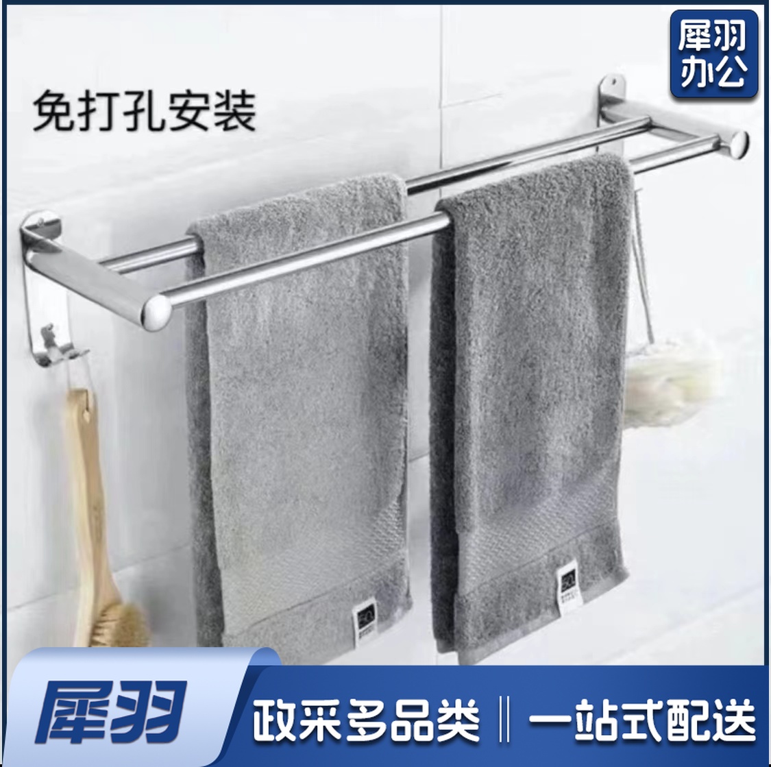 加厚304不锈钢毛巾架 免打孔卫生间毛巾架 60cm 2联毛巾架