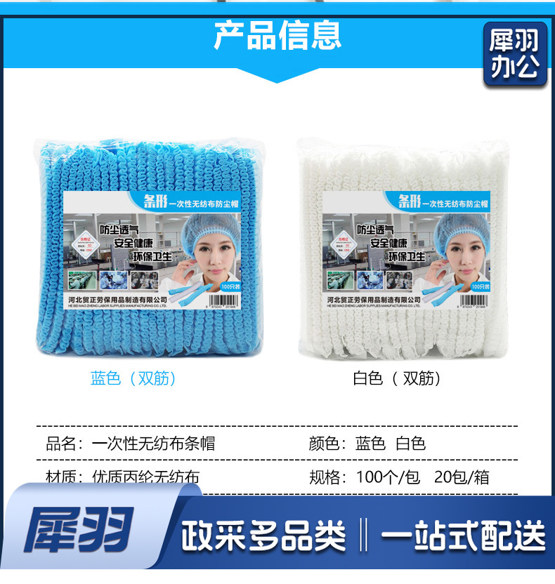 一次性头套帽子厨师工作帽防尘防污头罩车间房网帽防油烟无纺布条形帽白色