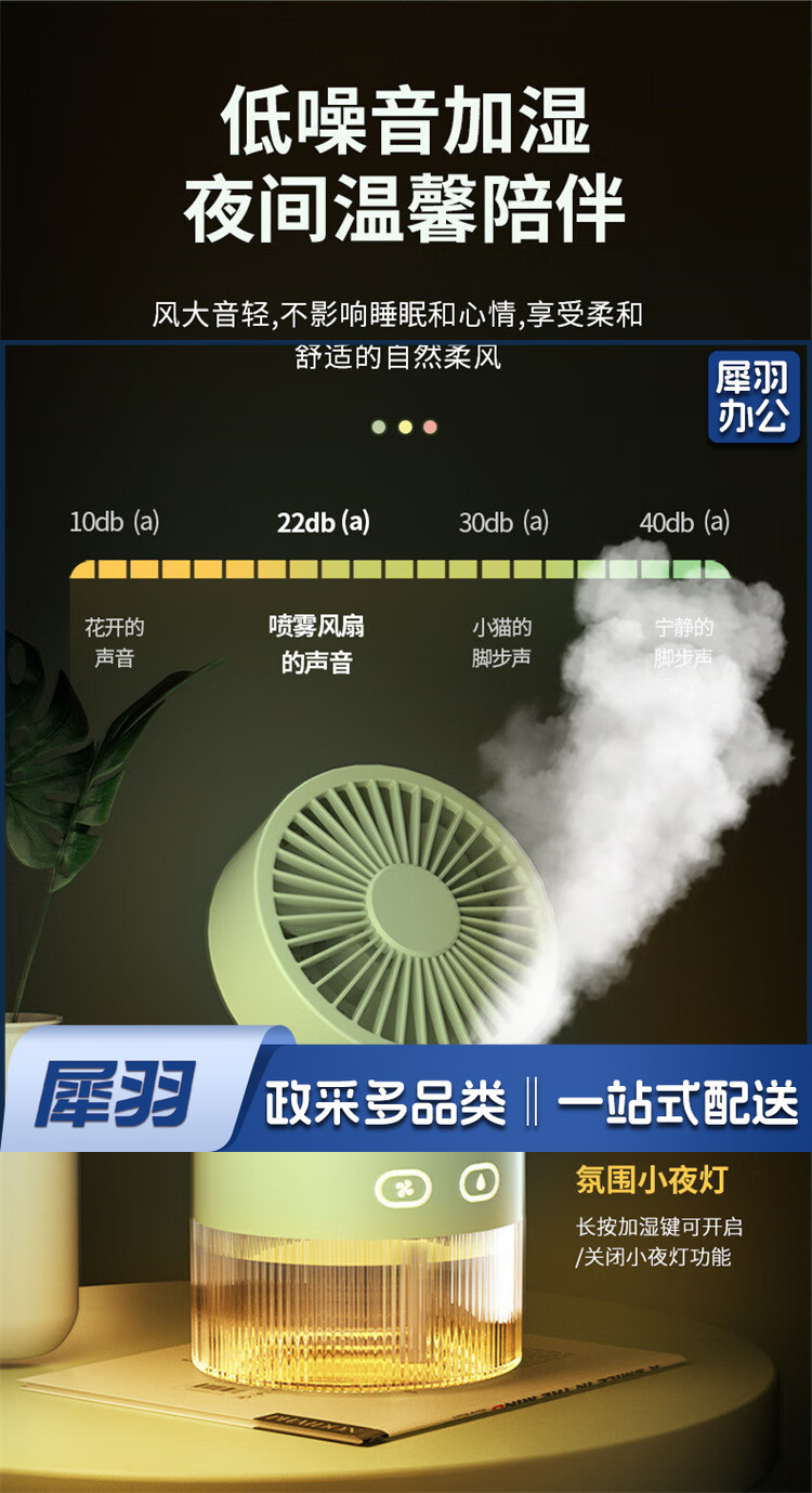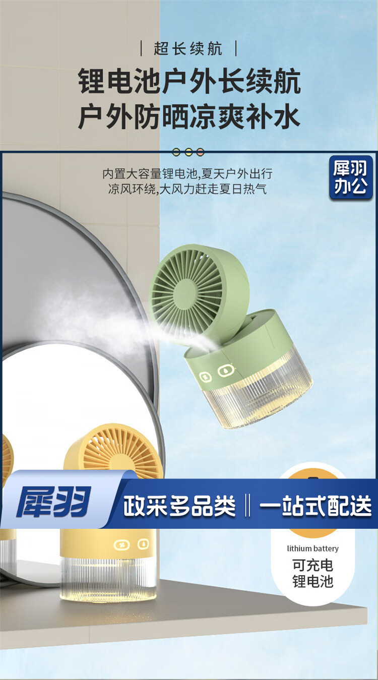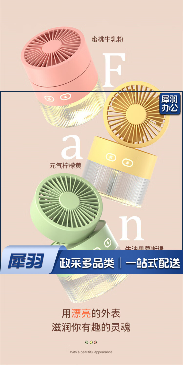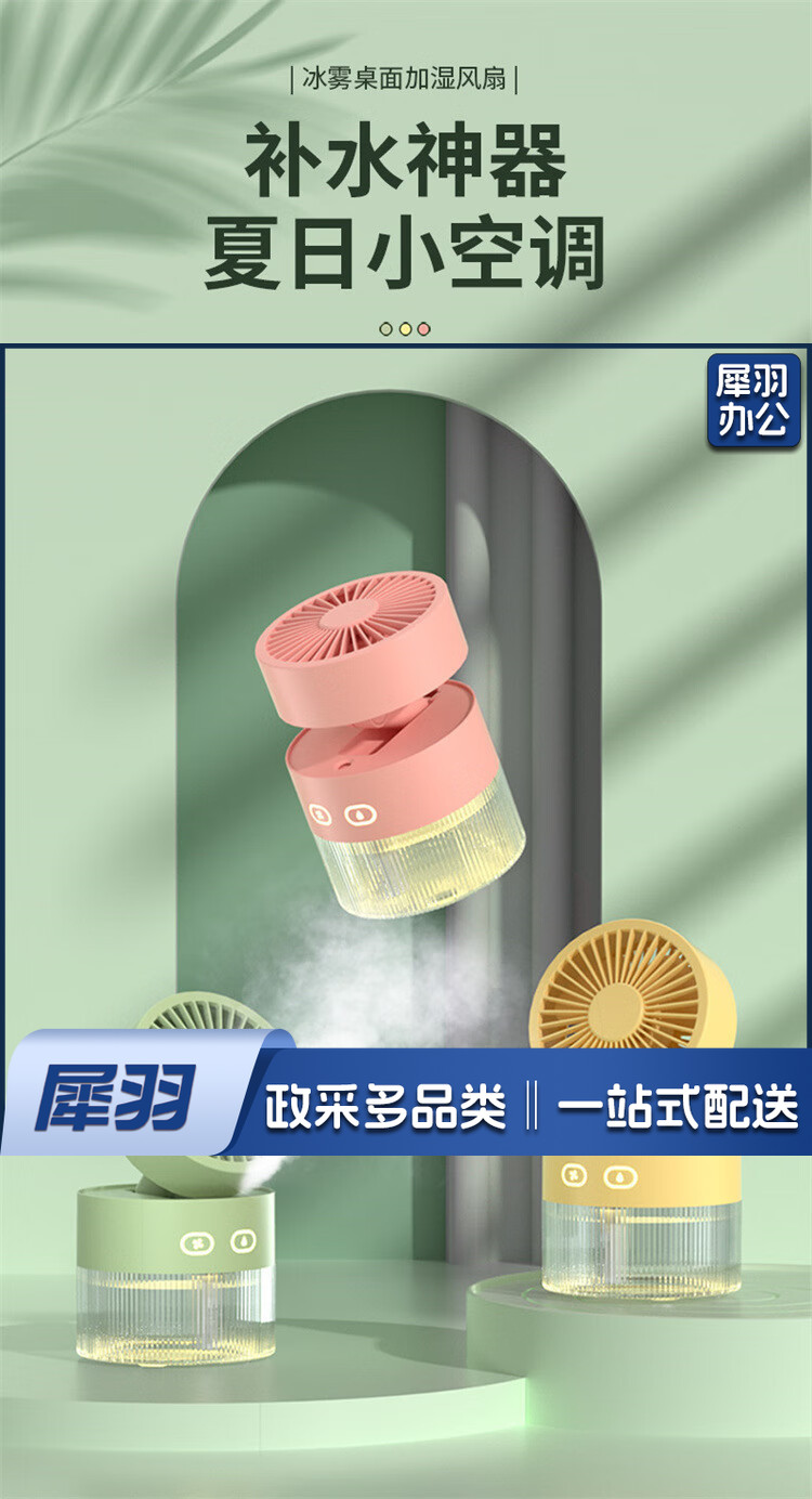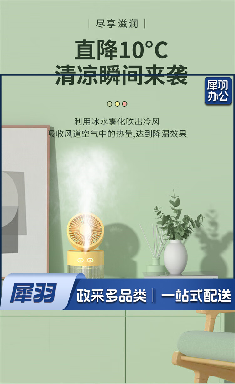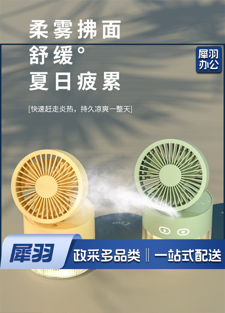 小风扇桌面喷雾加湿器制冷空调卧室办公室小型静音二合一电风扇净化便携充电宿舍夜灯礼物 黄色