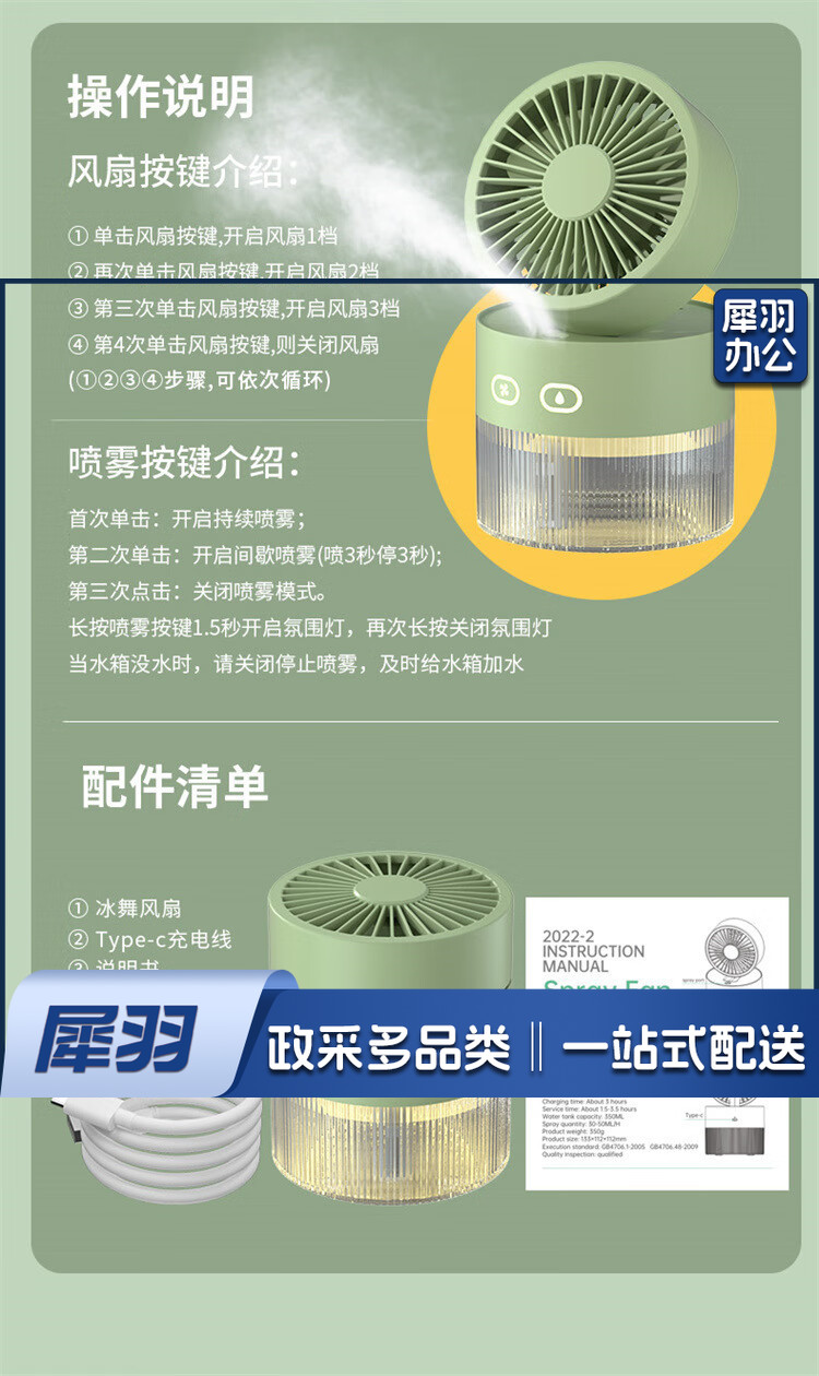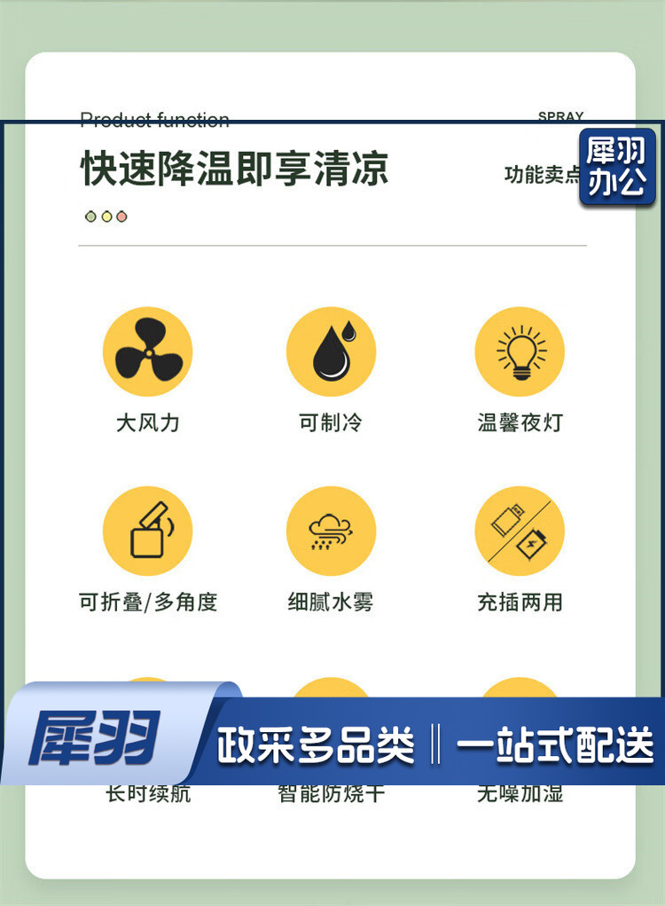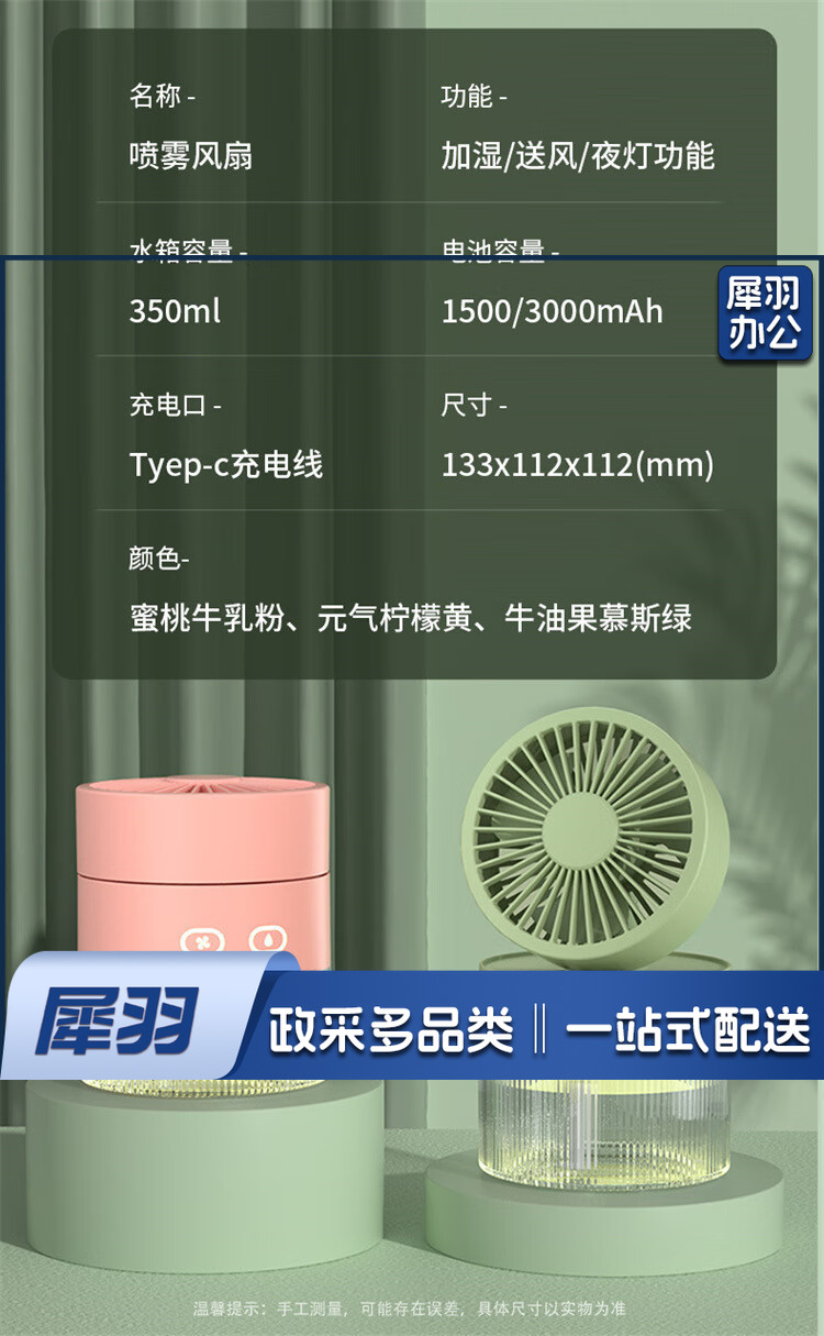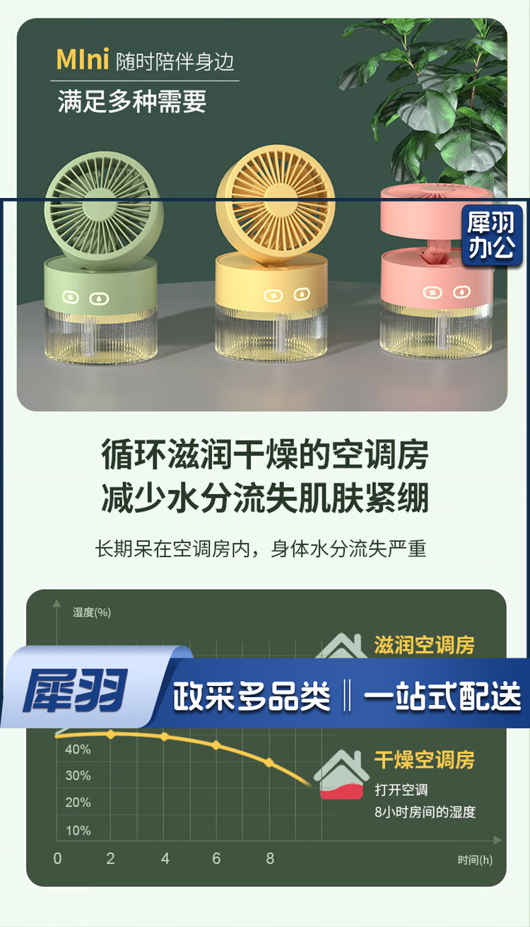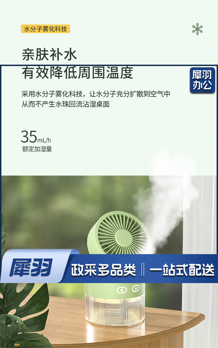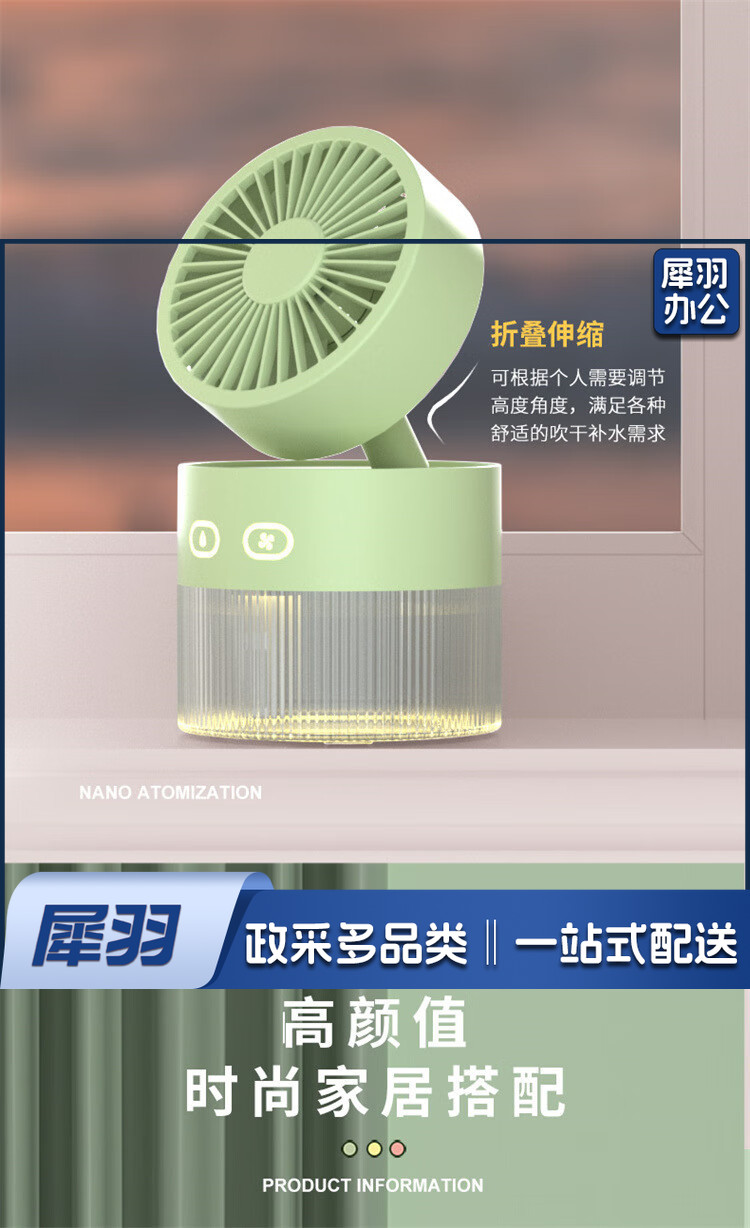 小风扇桌面喷雾加湿器制冷空调卧室办公室小型静音二合一电风扇净化便携充电宿舍夜灯礼物 黄色