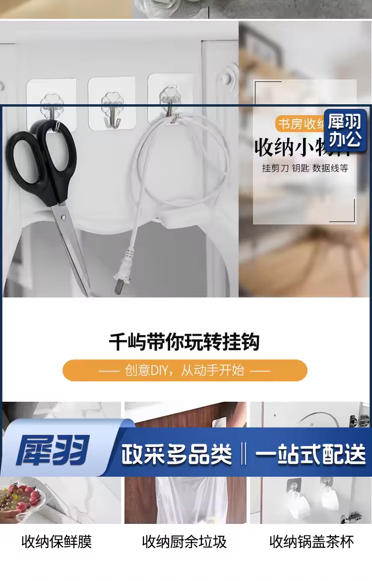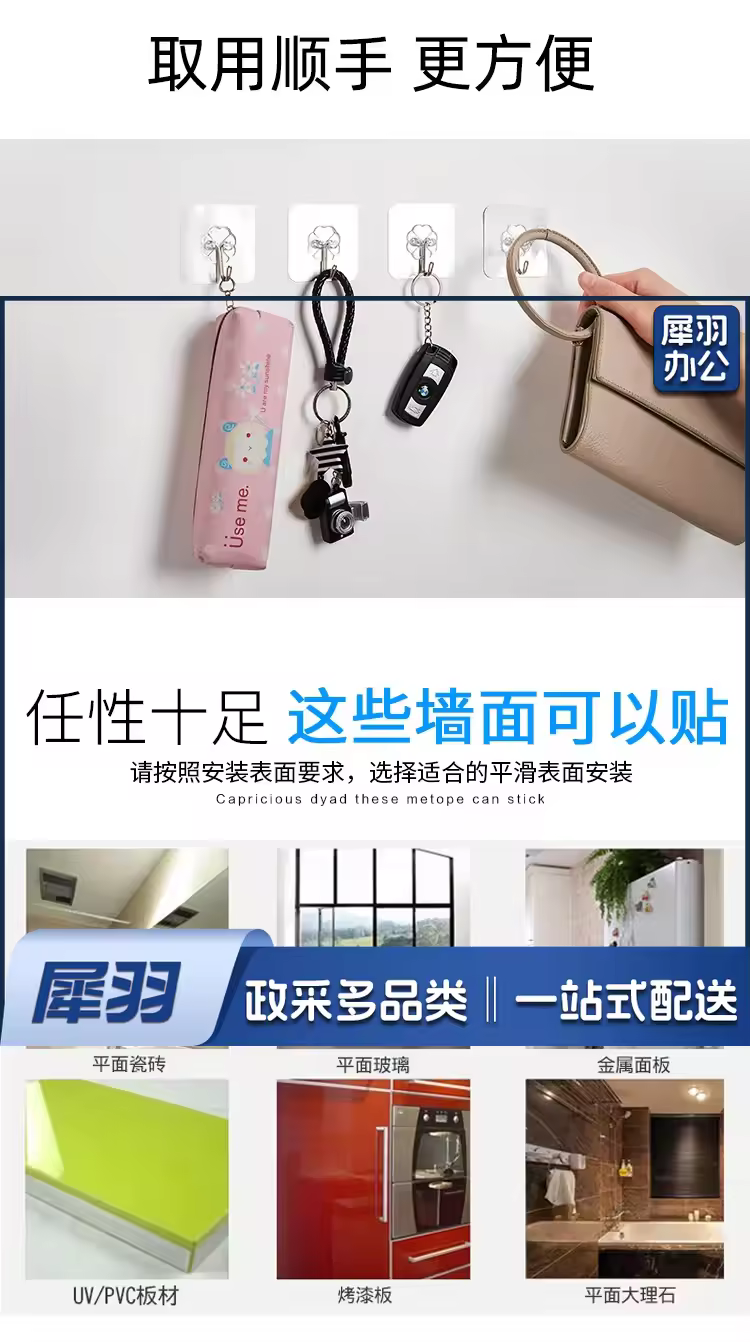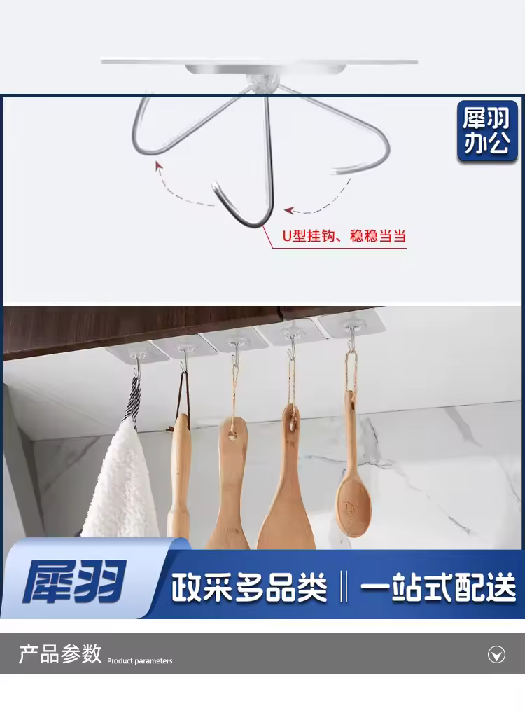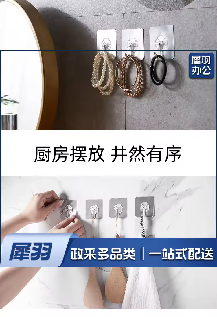 20只装拉丝银挂钩粘钩无痕门后粘钩衣帽厨房浴室衣服挂钩子