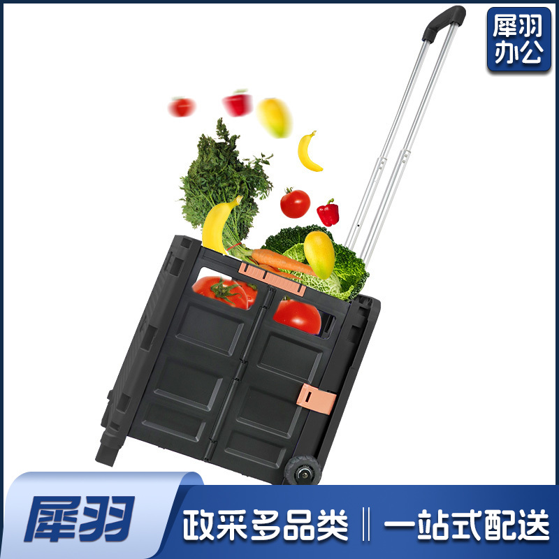 折叠购物车手拉车 超市买菜车手推车折叠小拖车小拉车 铝合金车行李车搬运车家用拖车爬楼款黑BY06-B