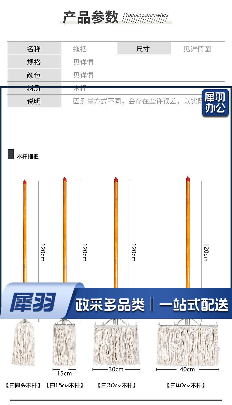 【白圆头木杆】木杆拖把棉线大堂老式墩布尘推拖布工厂 物业吸水拖把