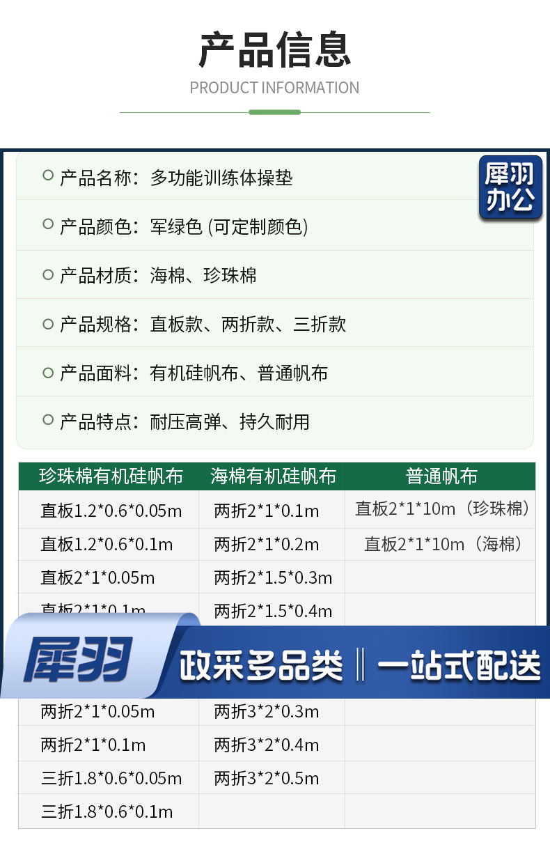 体操垫空翻垫仰卧起坐垫直板2*1*0.05m珍珠棉带粘贴可拼接地垫