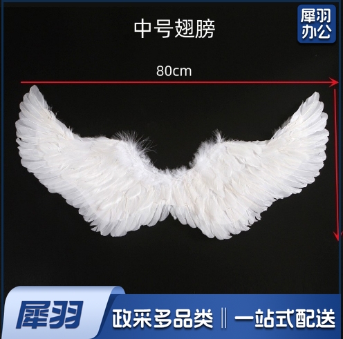 羽毛翅膀天使道具舞台表演儿童模仿走秀演出圣诞节日装饰三件套(中号)