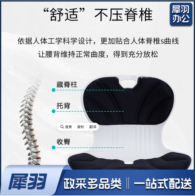 护腰坐垫靠背一体垫办公室人体工学靠背垫久坐不累靠垫护腰坐姿椅