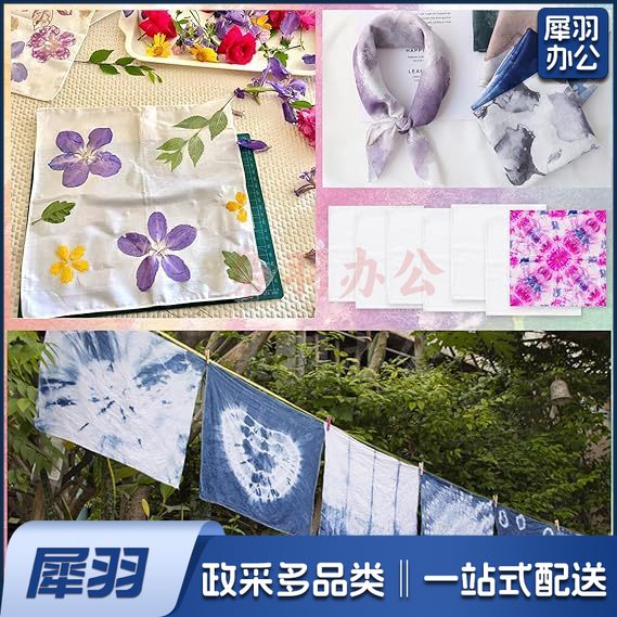 扎染蜡染32支全棉白色手帕幼儿园手工DIY拓染刺绣小方巾批发