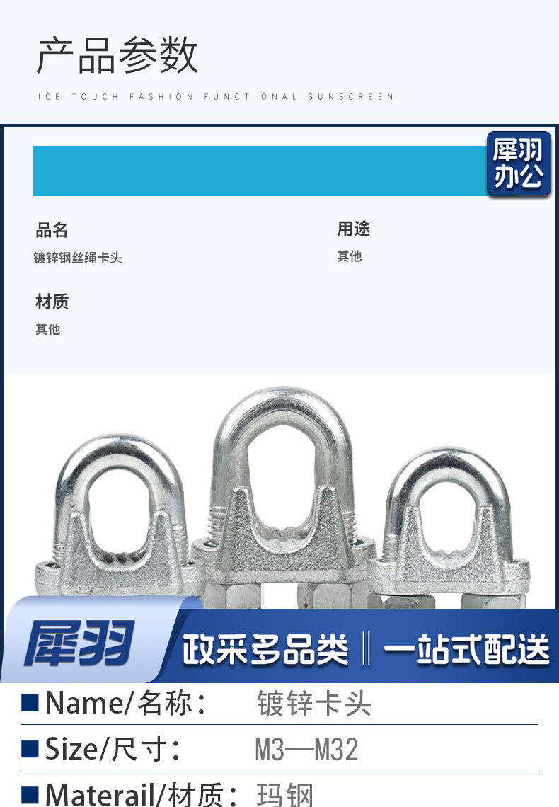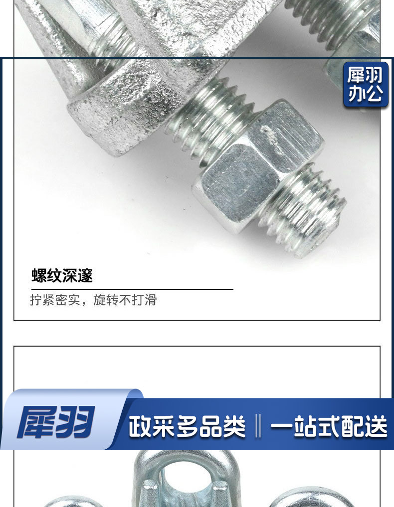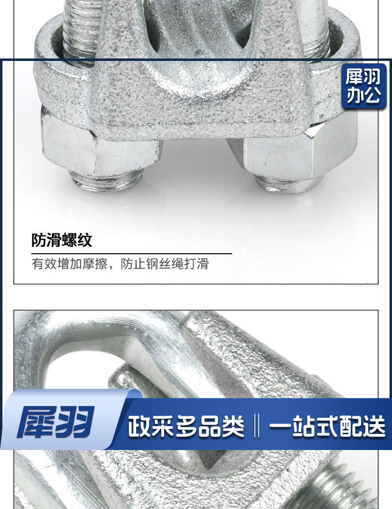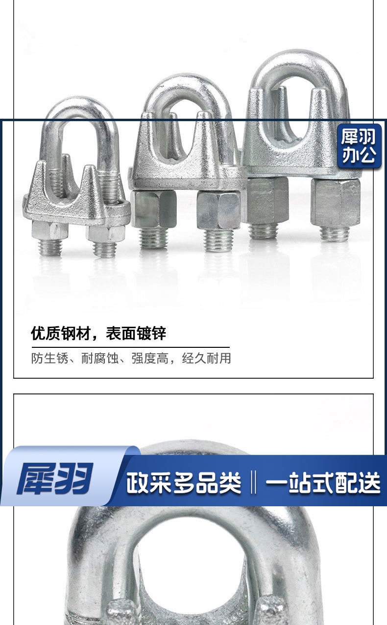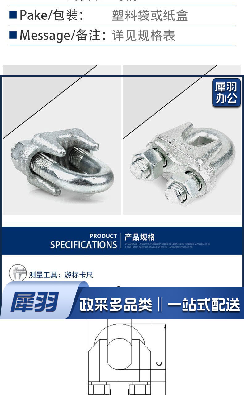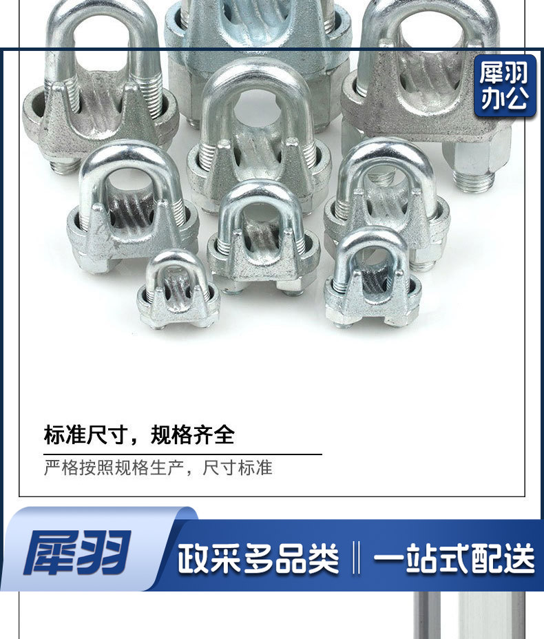 M5 镀锌钢丝绳锁扣U型扣夹绳器钢丝绳夹头卡扣
