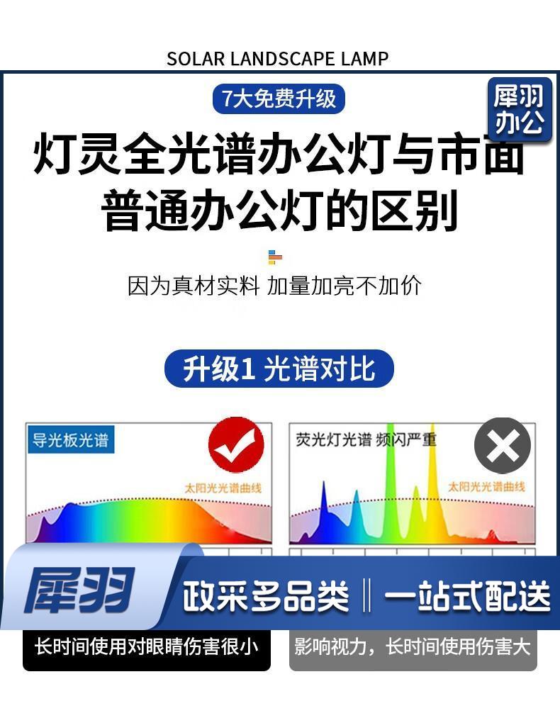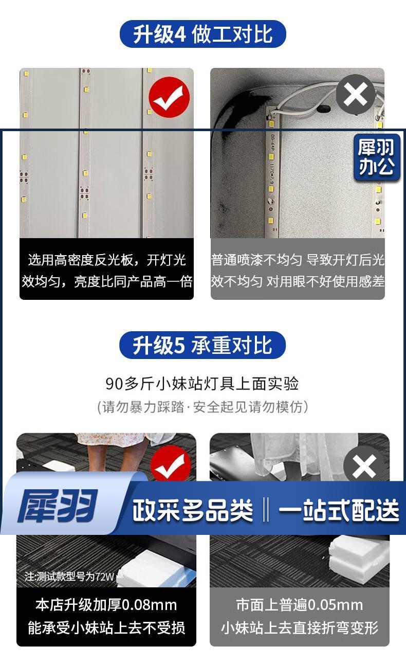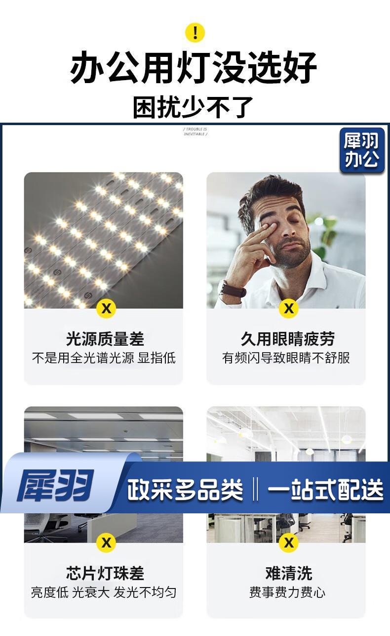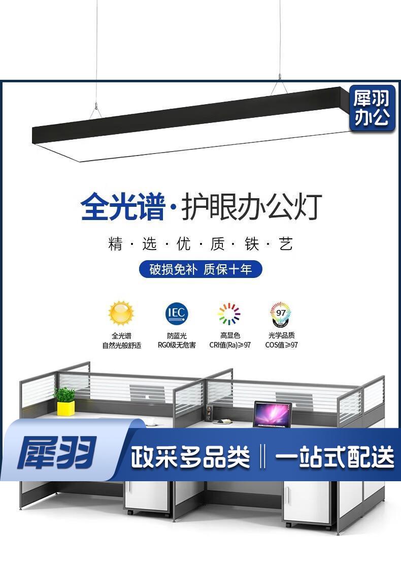 全光谱护眼办公室吊灯led长条灯平板吊线灯具 黑框直角120*20cm-48W白光高亮款