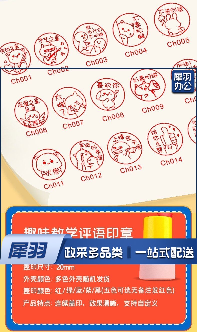 奇珍异刻 老师评语表情包印章教师用奖励盖章儿童可爱改作业表扬趣味小图章 棒棒哒CHO29[20mm]