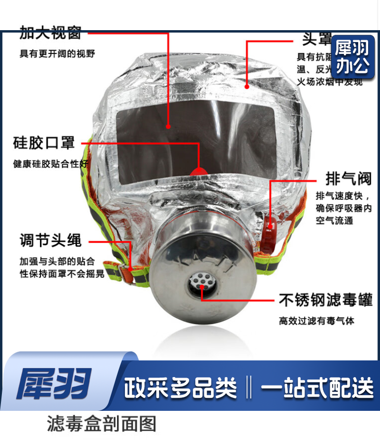 TZL30型 消防面罩 逃生面罩 火灾防烟防毒面具 过滤式自救呼吸器 成人款1个/盒