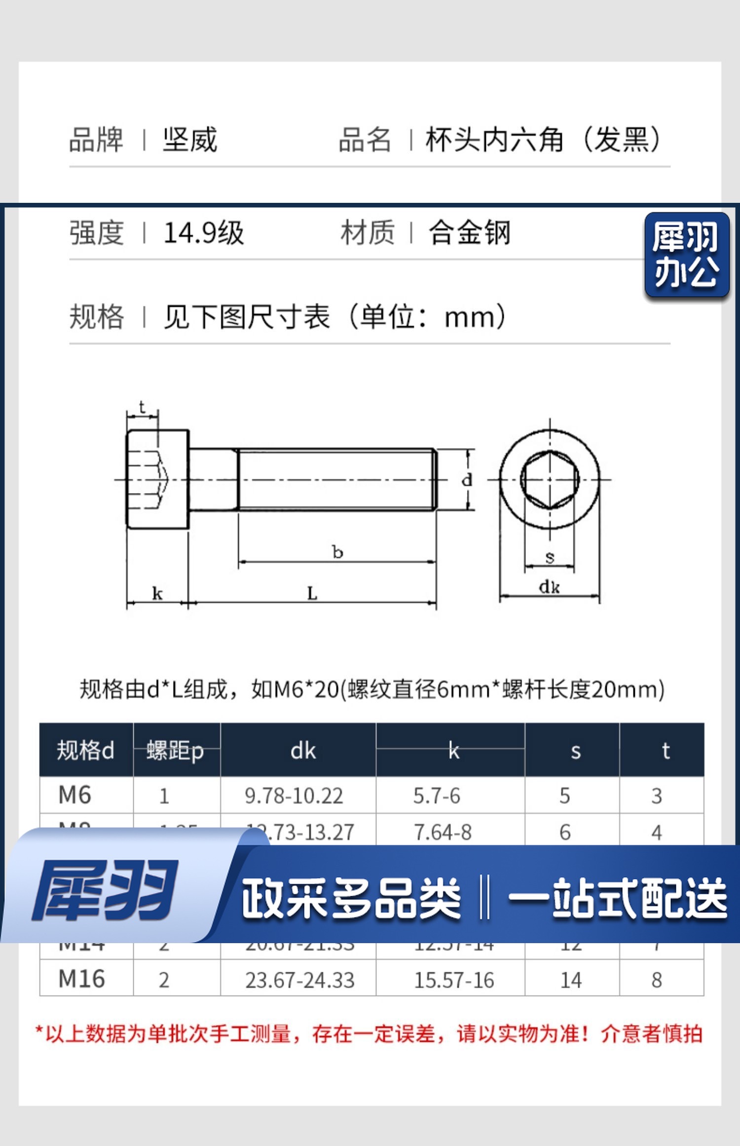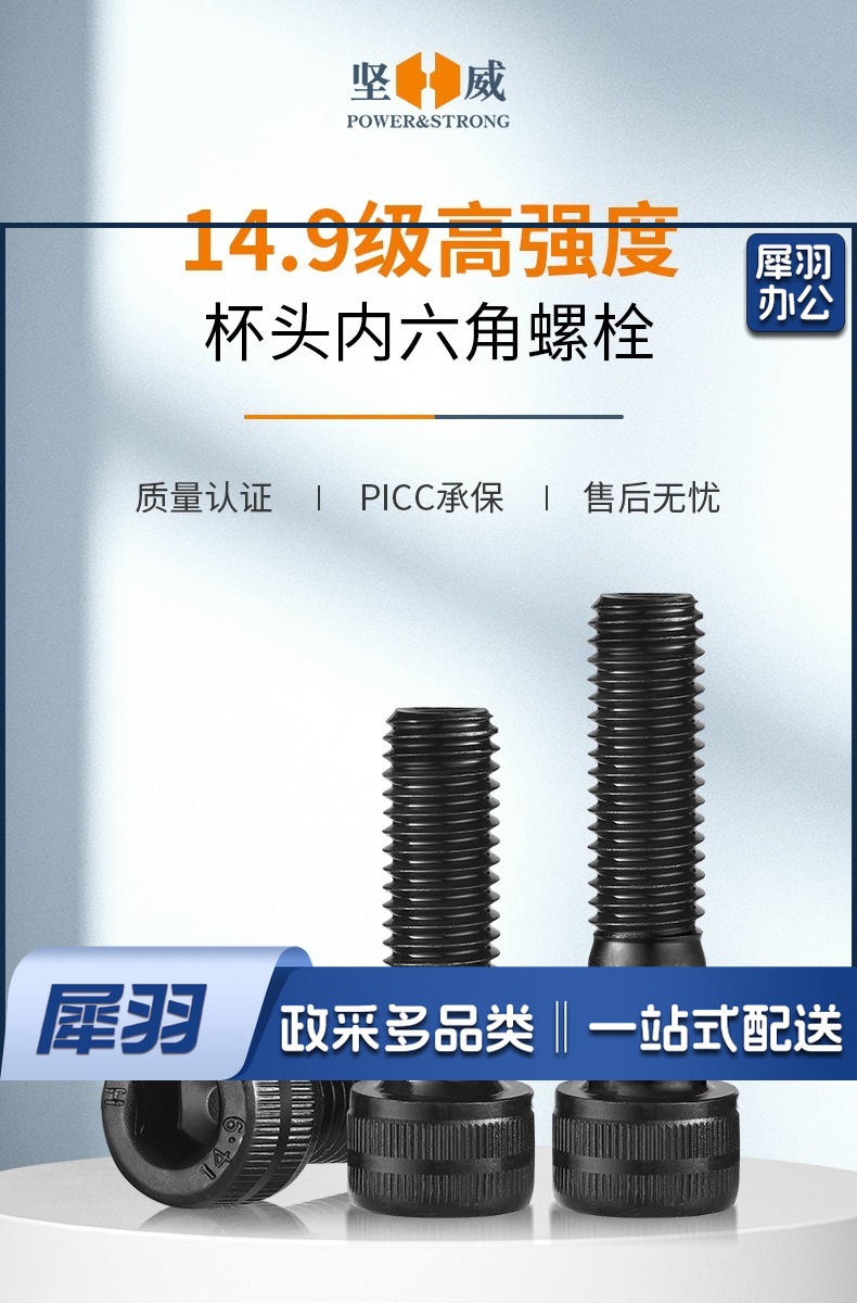 8*30 14.9级高强度杯头内六角螺丝加长螺栓合金钢黑色螺钉
