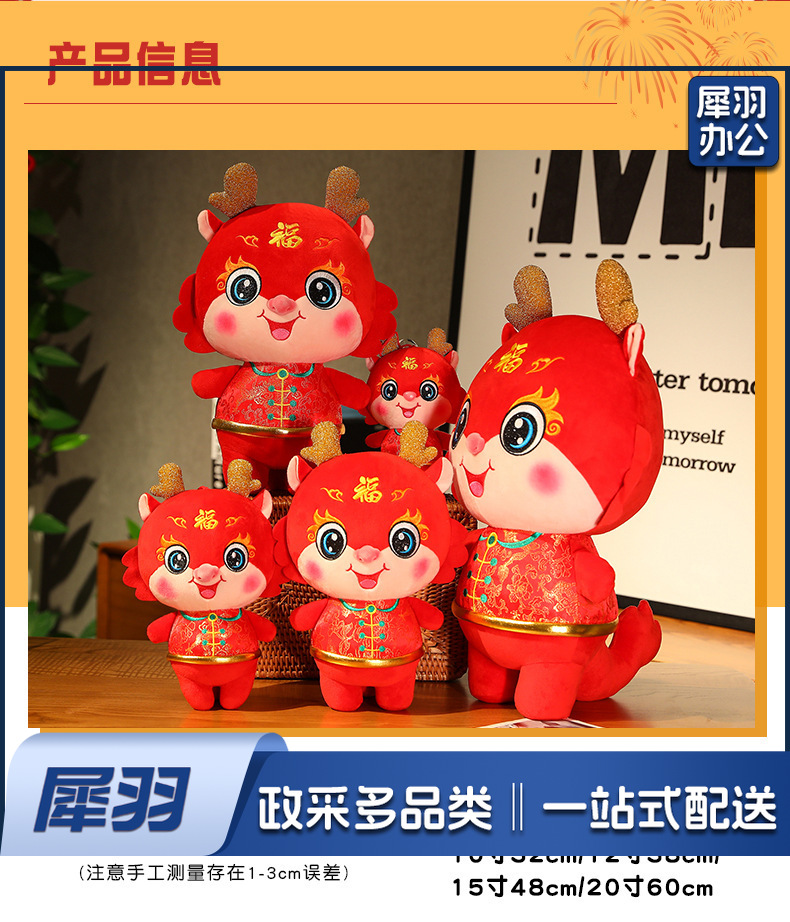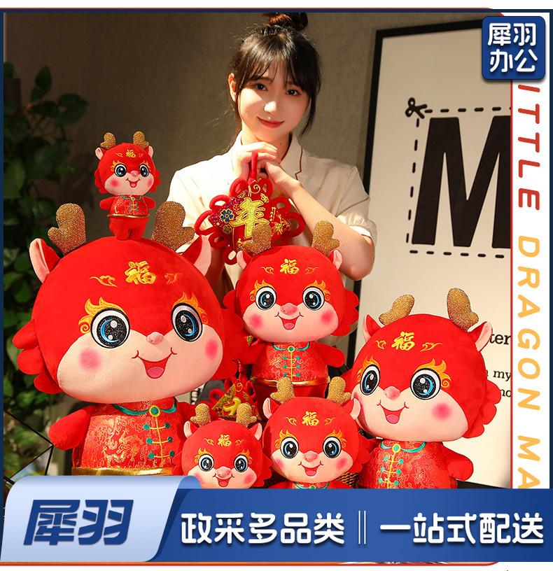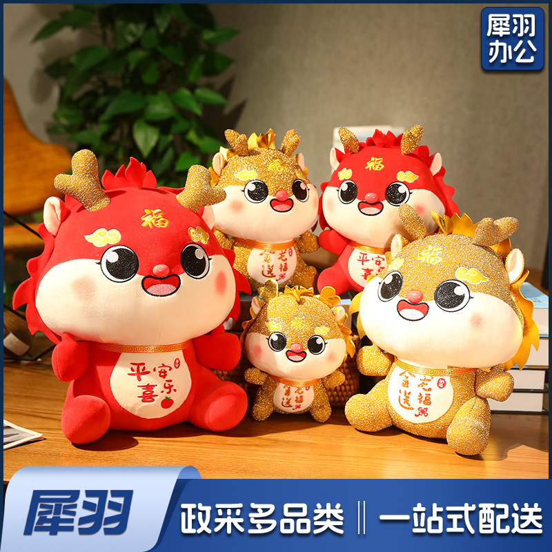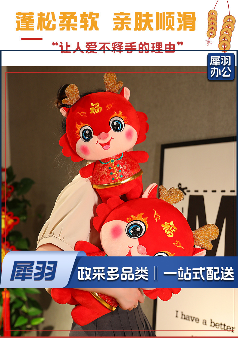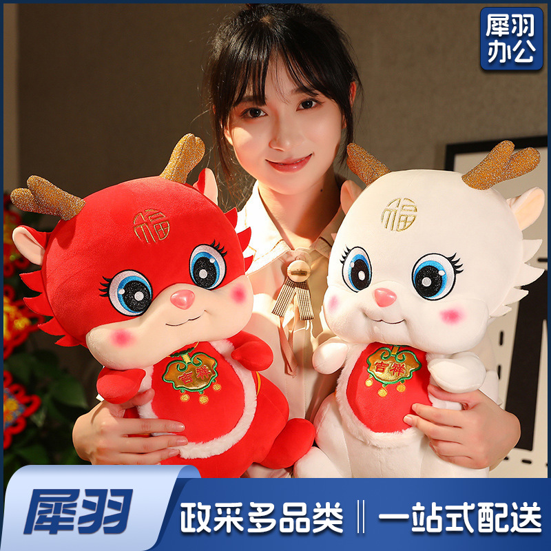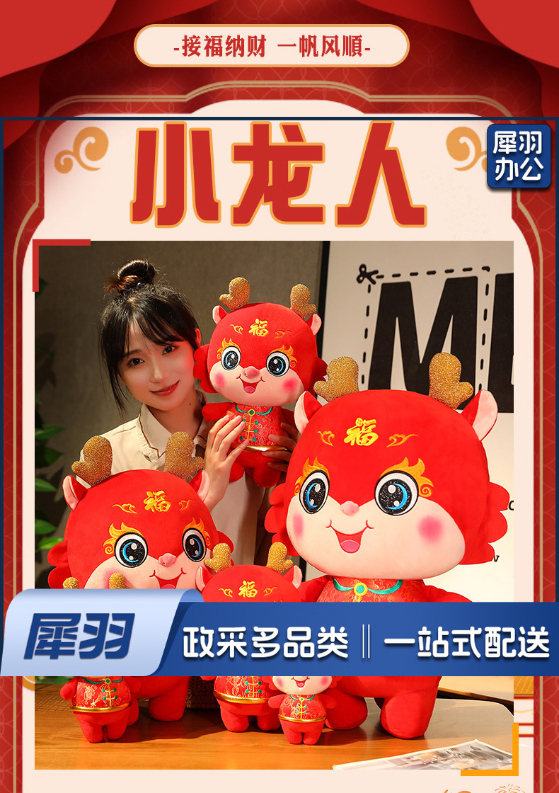 龙年吉祥物毛绒玩具小龙人玩偶布娃娃儿童生肖龙公仔公司年货礼品龙年大吉8寸约24厘米【含龙角】