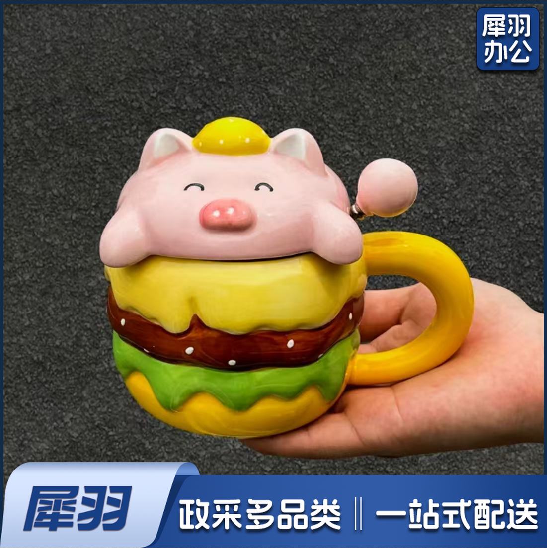 高颜值卡通汉堡陶瓷杯子带盖 实用伴手礼