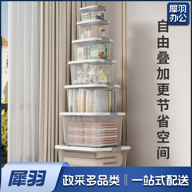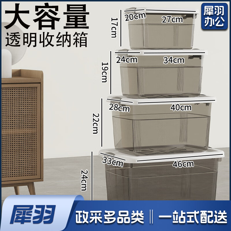 塑料衣物收纳箱整理箱箱整理箱塑料储物箱子全透 中号 34*24*19cm 透明白