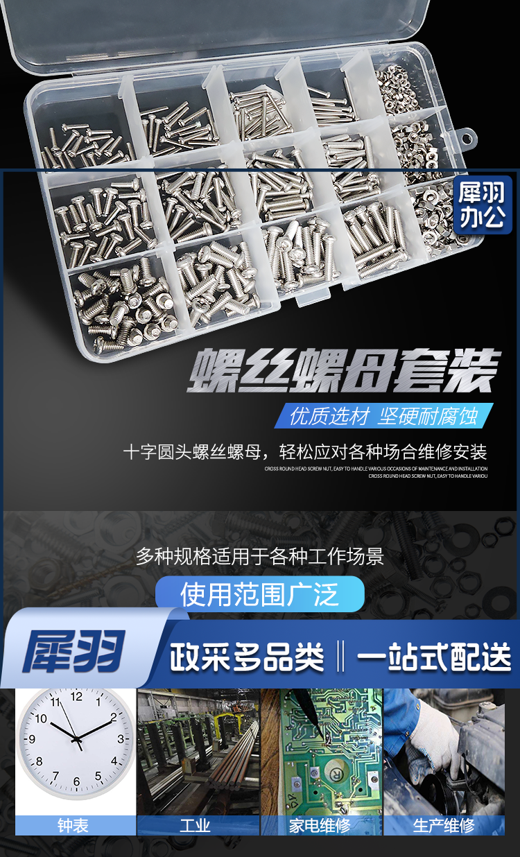 家用304不锈钢螺丝套装480十字混装M2M3M4家用墙壁开关插座 不锈钢套装480只