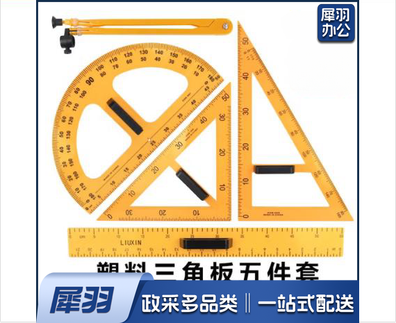 教学用大号磁性三角板磁吸式三角尺子 教师用大多功能圆规大号绘图工具量角器 作图套装套尺 塑料五件套
